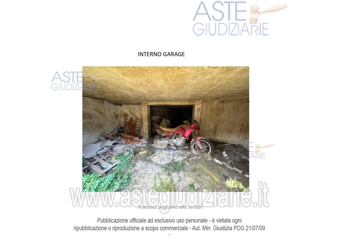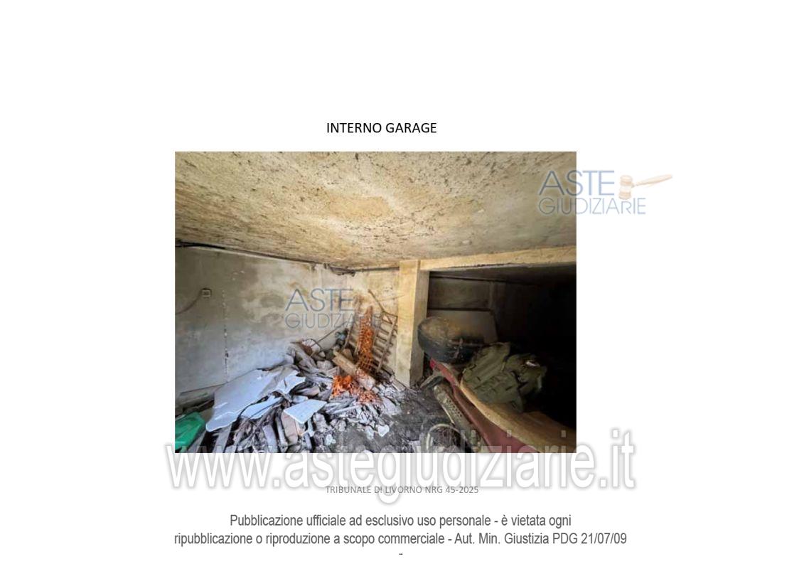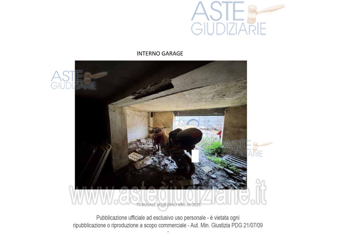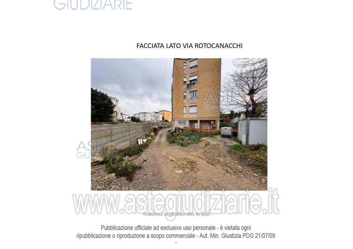 Vendita all'asta Senza incanto, con gara telematica asincrona - LOTTO 1: Diritti di piena proprietà 1/1 su Locale Garage categoria C/6 posto al piano S1 di un fabbricato condominiale ubicato in Livorno in Via Rodocanacchi n. 12, oltreché quota di 84,70% di piena proprietà su terreno sito a Livorno in Via Rodocanacchi n.12, Superficie 90 mq , r.d. € 0,02, r.a. € 0,01. Prezzo base € 51.150,00 (offerta minima € 38.362,50). Data inizio operazioni di vendita: 13/05/2026 ore 10:00. Giudice Dott. Franco Pastorelli. Curatore Dott. Riccardo Braccini. Rif. Tribunale di Livorno - Liquidazione giudiziale(cci) n. 45/2025