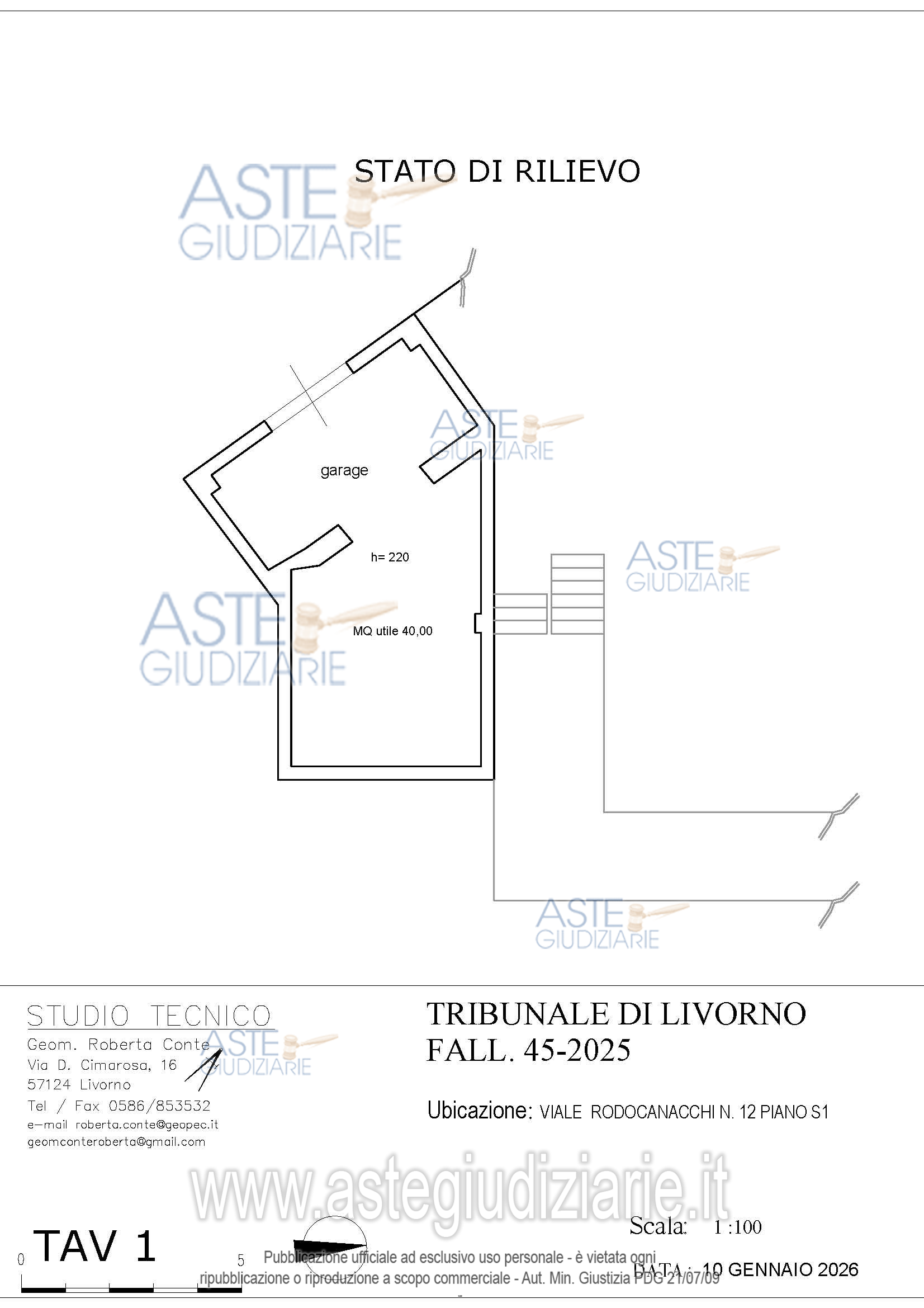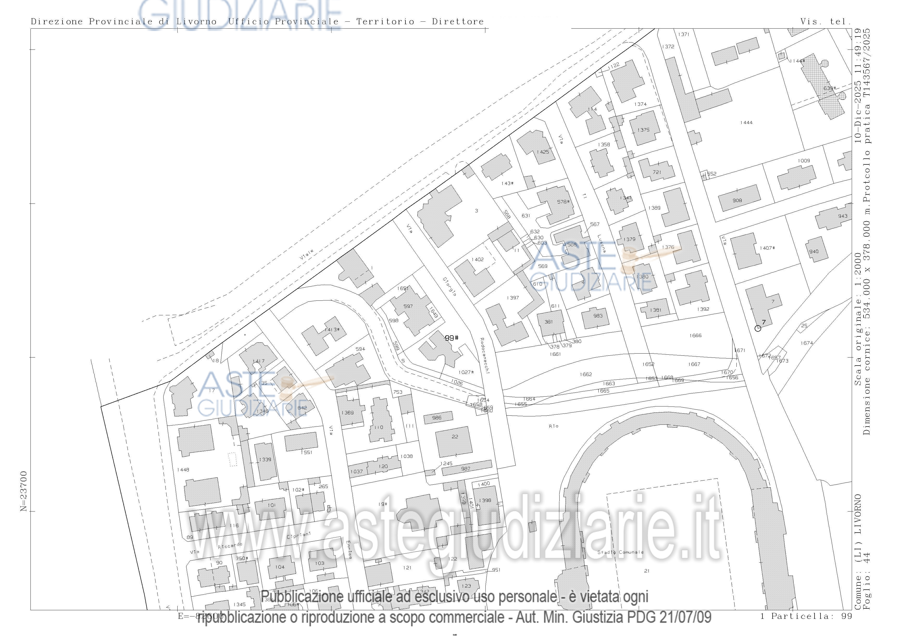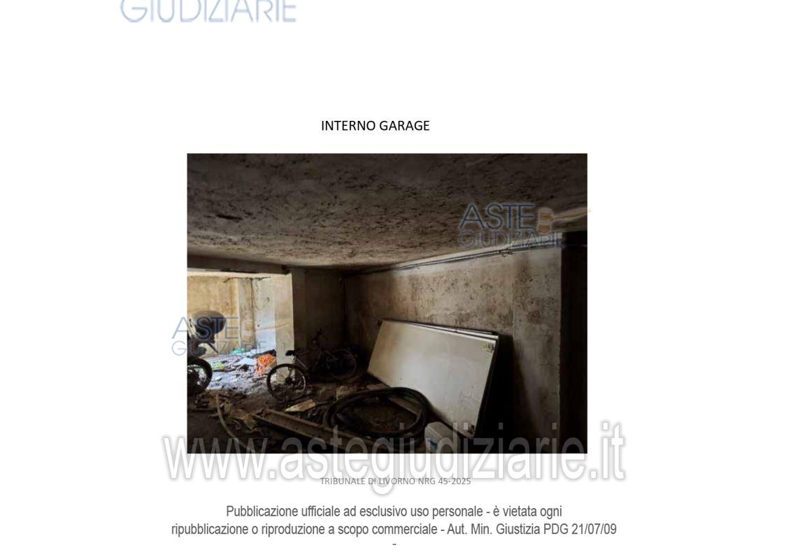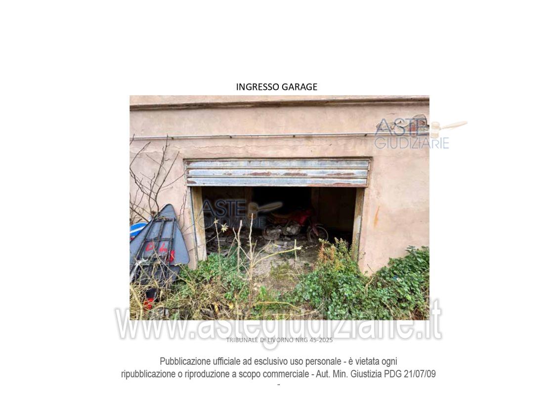 Vendita all'asta Senza incanto, con gara telematica asincrona - LOTTO 1: Diritti di piena proprietà 1/1 su Locale Garage categoria C/6 posto al piano S1 di un fabbricato condominiale ubicato in Livorno in Via Rodocanacchi n. 12, oltreché quota di 84,70% di piena proprietà su terreno sito a Livorno in Via Rodocanacchi n.12, Superficie 90 mq , r.d. € 0,02, r.a. € 0,01. Prezzo base € 51.150,00 (offerta minima € 38.362,50). Data inizio operazioni di vendita: 13/05/2026 ore 10:00. Giudice Dott. Franco Pastorelli. Curatore Dott. Riccardo Braccini. Rif. Tribunale di Livorno - Liquidazione giudiziale(cci) n. 45/2025