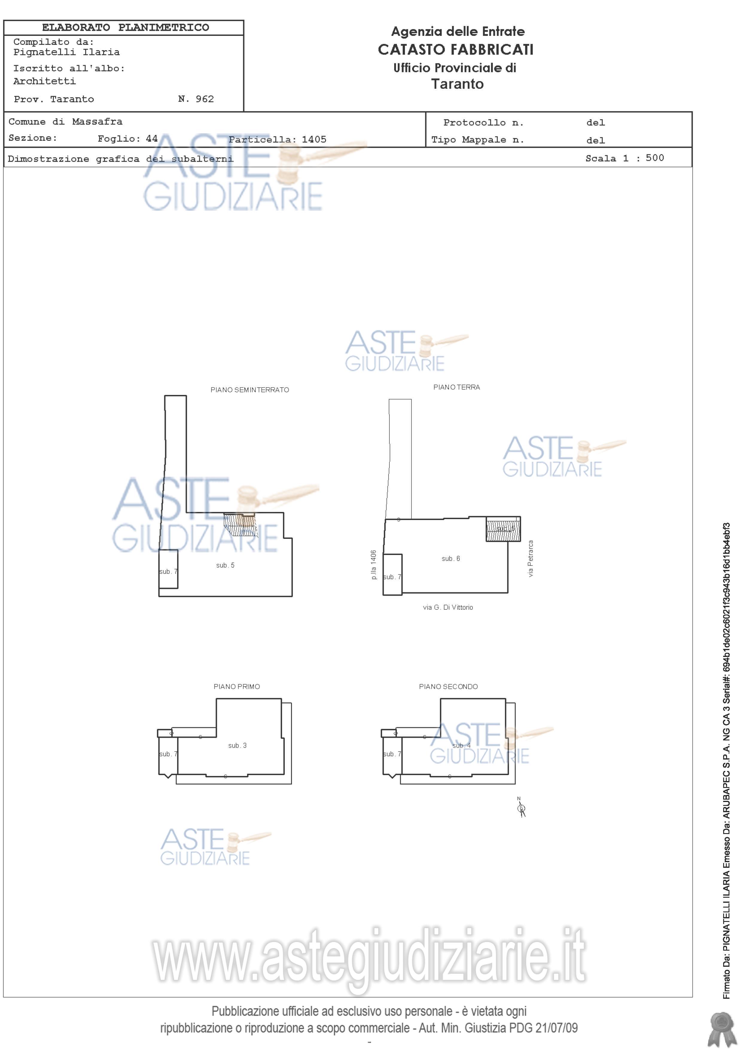 Vendita all'asta Senza incanto, con gara telematica asincrona - LOTTO 1: LOTTO UNOPiena proprietà del Garage con cancello automatico sito in Massafra al piano seminterratocon entrata da via Petrarca angolo via G. Di Vittorio della superficie lorda di mq 240. Prezzo base € 160.000,00 (offerta minima € 120.000,00). Data inizio operazioni di vendita: 21/04/2026 ore 16:00. Giudice Andrea Paiano. Professionista delegato alla vendita Avv. Grazia Brescia. Custode Giudiziario Avv. Grazia Brescia - Email "bresciagrazia@libero.it". Rif. Tribunale di Taranto - Esecuzione immobiliare post legge 80 n. 394/2021
