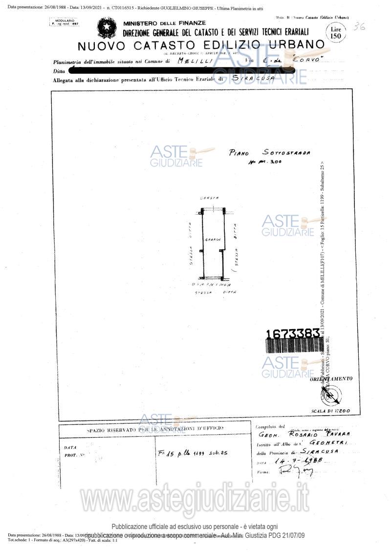 Vendita all'asta Senza incanto, con gara telematica sincrona mista - LOTTO 7: Lotto 7 in perizia integrativa: Piena proprietà di garage di mq. 34 catastali, facente parte della Palazzina S16. Il bene risulta concesso in godimento precario sino alla vendita con contratto del 1.8.2025 registrato all’Agenzia delle Entrate di Siracusa il 3.10.2025 al n. 4428 serie T3. Prezzo base € 8.250,00 (offerta minima € 6.187,00). Data vendita 25/06/2026 ore 11:00. Giudice Dott. Fabio Letterio Ciraolo. Custode Giudiziario Avv. Maria Cristina Grassi - Email "avv.mariacristinagrassi@gmail.com". Curatore Avv. Maria Cristina Grassi - Email "avv.mariacristinagrassi@gmail.com"; Tel. 0950907731. Rif. Tribunale di Catania - Fallimentare n. 1/2007