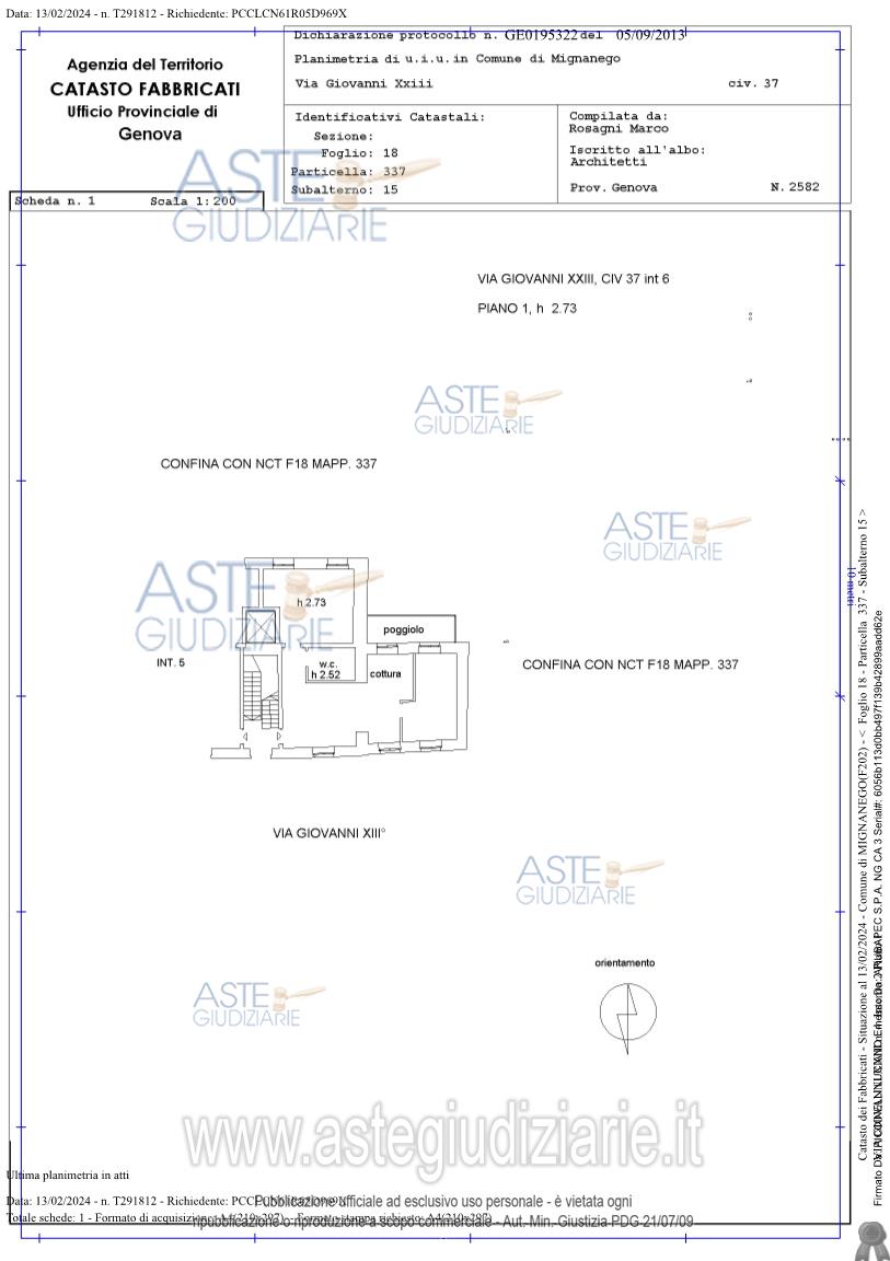 Vendita all'asta Senza incanto, con gara telematica sincrona mista - LOTTO 2: appartamento ubicato a Mignanego (GE) - Via Giovanni XXIII civ. 4, interno 2, piano 1 e posto auto ubicato a Mignanego (GE) - Via Giovanni XXIII civ. 4, piano S1. Prezzo base € 42.006,00 (offerta minima € 31.505,00). Data vendita 13/02/2026 ore 14:30. Professionista delegato alla vendita Avv. Federica Canu - Email "f.canu@libero.it"; Cell. 3455933377. Custode Giudiziario Dott. Sovemo - Email "visitegenova@sovemo.com"; Tel. 0105299253. Rif. Tribunale di Genova - Esecuzione immobiliare post legge 80 n. 470/2023