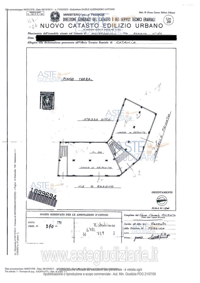 Vendita all'asta Senza incanto, con gara telematica sincrona mista - LOTTO 1: LOTTO 1 - Diritti di piena proprietà su locale garage ubicato in Misterbianco (CT) Via Girolamo Rosano nn. 45-49, CAP 95045, posto al piano terra, di circa mq. 412,00. Prezzo base € 330.308,50 (offerta minima € 247.731,37). Data vendita 24/06/2026 ore 11:00. Professionista delegato alla vendita Avv. Santo Harim Militello - Email "studiolegalemilitello@gmail.com"; Tel. 095388875. Custode Giudiziario Avv. Santo Harim Militello - Email "studiolegalemilitello@gmail.com"; Tel. 095388875. Rif. Tribunale di Catania - Esecuzione immobiliare post legge 80 n. 596/2013