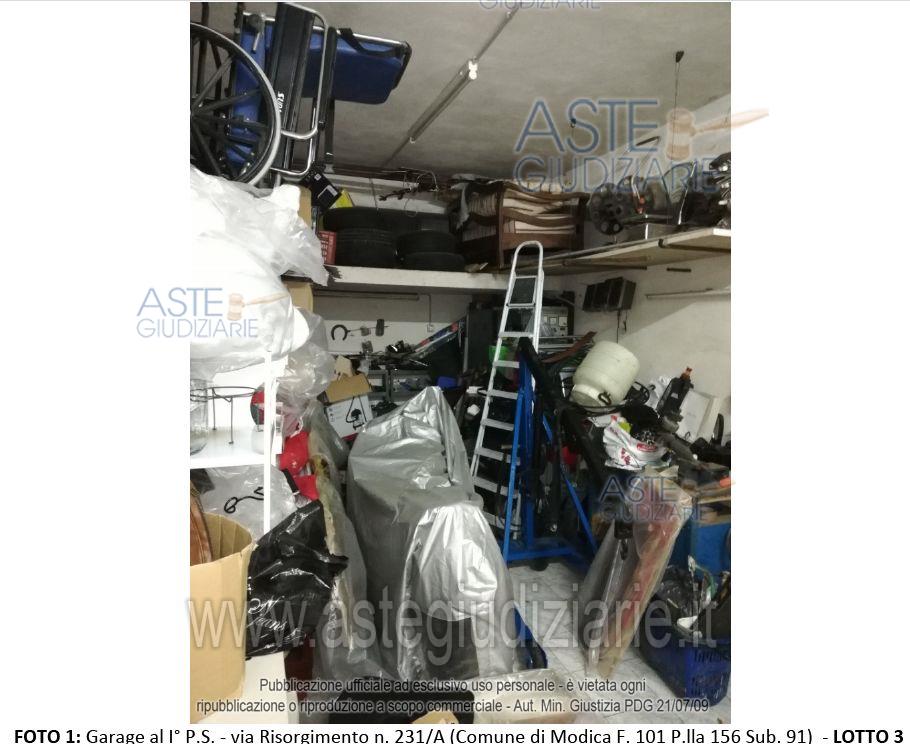 Vendita all'asta Senza incanto, con gara telematica asincrona - LOTTO 3: Quota di 13/24 della piena ed intera proprietà di n. 2 garage posti al primo piano sottostrada di Via Risorgimento n. 231/A, Modica. Prezzo base € 5.000,00 (offerta minima € 5.000,00). Data inizio operazioni di vendita: 14/01/2026 ore 12:00. Giudice Dott. Giovanni Giampiccolo. Curatore Dott. Giuseppe Buscema - Tel. 0932 762928. Rif. Tribunale di Ragusa ex Tribunale di Modica - Fallimentare n. 1/2010
