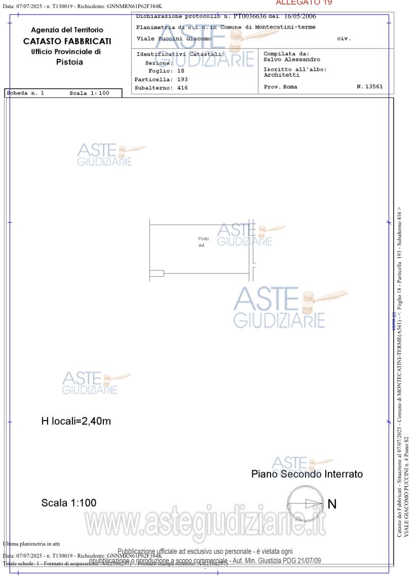 Vendita all'asta Senza incanto, con gara telematica asincrona - LOTTO 4: Posto auto al piano secondo interrato. Prezzo base € 8.400,00 (offerta minima € 6.300,00). Data inizio operazioni di vendita: 20/05/2026 ore 11:00. Giudice Nicoletta Maria Caterina Curci. Professionista delegato alla vendita Avv. Lucrezia Giachetti - Email "lucrezia.giachetti@gmail.com". Custode Giudiziario Isveg - Email "prenota.pt@isveg.it". Rif. Tribunale di Pistoia - Espropriazione immobiliare (cartabia) n. 80/2025