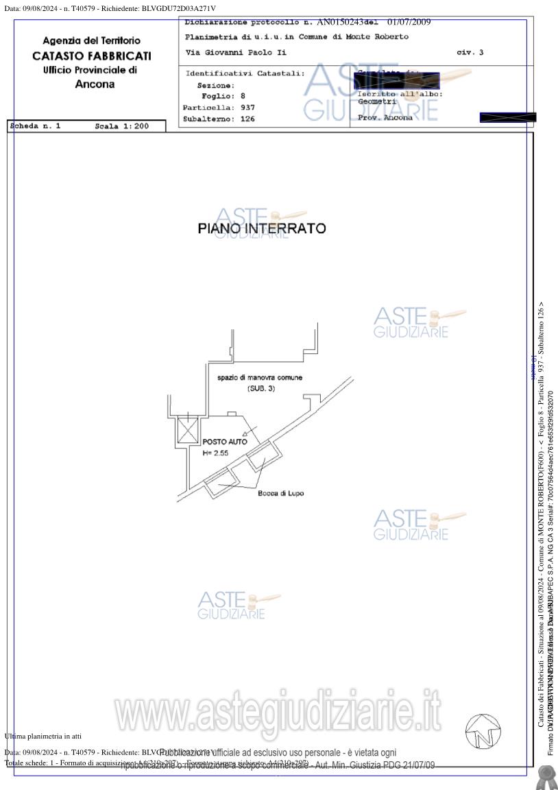 Vendita in attesa dell'emissione del nuovo bando d'asta. LOTTO 59: Lotto 59 (costituito dai lotti 59, 60, 62 - in perizia lotti 1.59, 1.60, 1.62) - Piena proprietà (1/1) di porzione di fabbricato sito a Monte Roberto (An) costituita da due posti auto situati al piano interrato con ingresso da via Giovanni Paolo II n 3 (beni n 85 e n 86) ed un box auto situato al piano interrato con ingresso da via Giovanni Paolo II n 1 (bene n 90). Ultimo prezzo base € 9.241,00 (offerta minima € 6.931,00). Professionista delegato alla vendita Avv. Ubaldo Sassaroli - Email "sassaroli@sassarolipica.it"; Tel. 0712900706. Custode Giudiziario Avv. Laura Barbieri - Email "l.barbieri@barbieriavvocatiassociati.it"; Cell. 07157205; Tel. 071577222. Rif. Tribunale di Ancona - Espropriazione immobiliare (cartabia) n. 41/2024