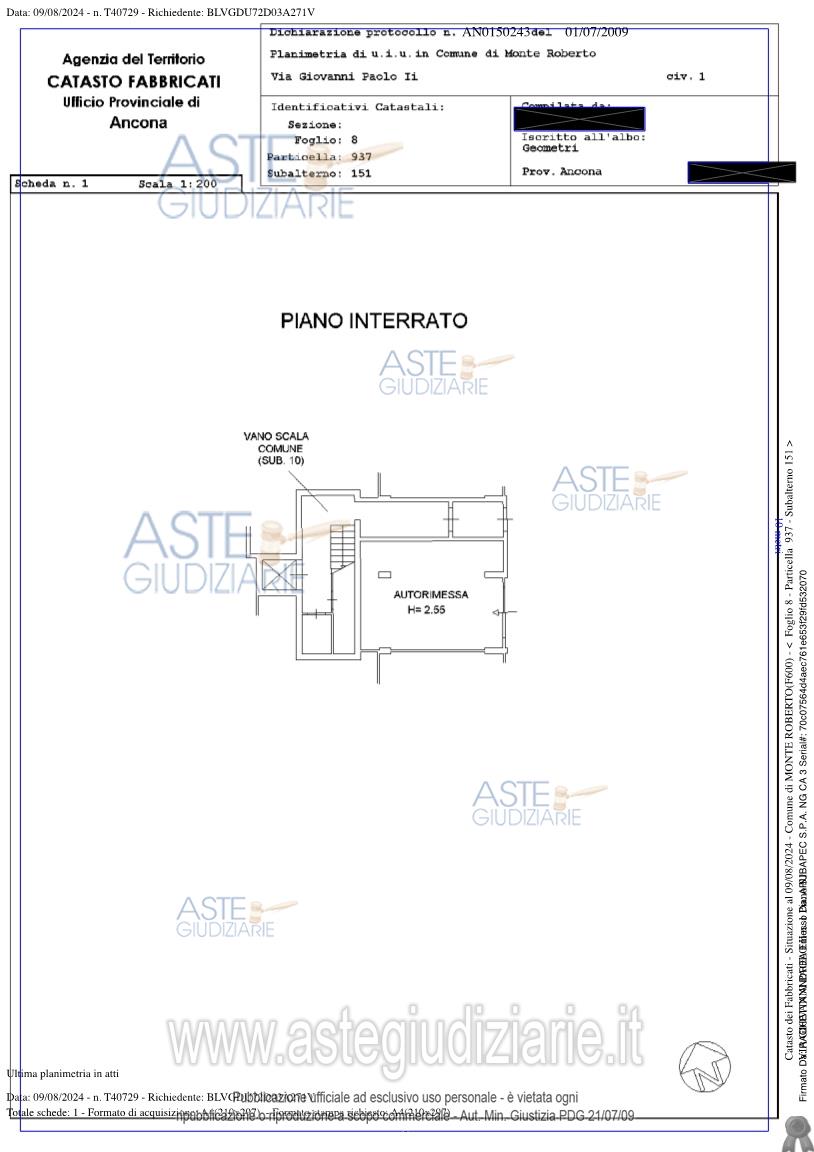 Vendita all'asta Senza incanto, con gara telematica asincrona - LOTTO 70: Lotto 70 (costituito dai lotti 70, 71, 72 - in perizia lotti 1.70, 1.71, 1.72) - Piena proprietà (1/1) di porzione di fabbricato sito a Monte Roberto (An) costituita da un box auto e due posti auto, tutti situati al piano interrato con ingresso da via Giovanni Paolo II n 1 (beni n 100, n 101, n 102). Prezzo base € 9.789,00 (offerta minima € 7.342,00). Data inizio operazioni di vendita: 19/03/2026 ore 12:30. Professionista delegato alla vendita Avv. Ubaldo Sassaroli - Email "sassaroli@sassarolipica.it"; Tel. 0712900706. Custode Giudiziario Avv. Laura Barbieri - Email "l.barbieri@barbieriavvocatiassociati.it"; Cell. 07157205; Tel. 071577222. Rif. Tribunale di Ancona - Espropriazione immobiliare (cartabia) n. 41/2024
