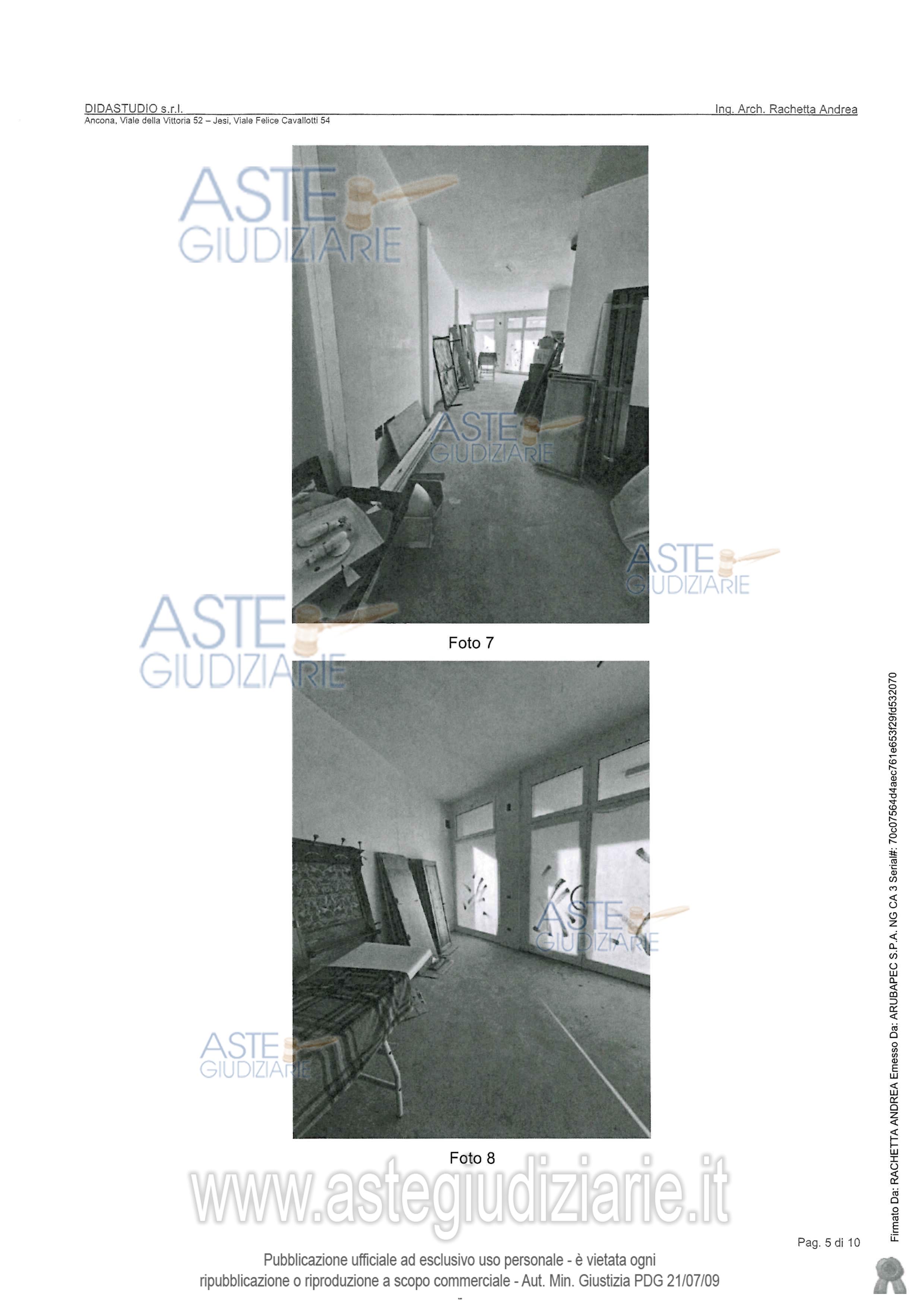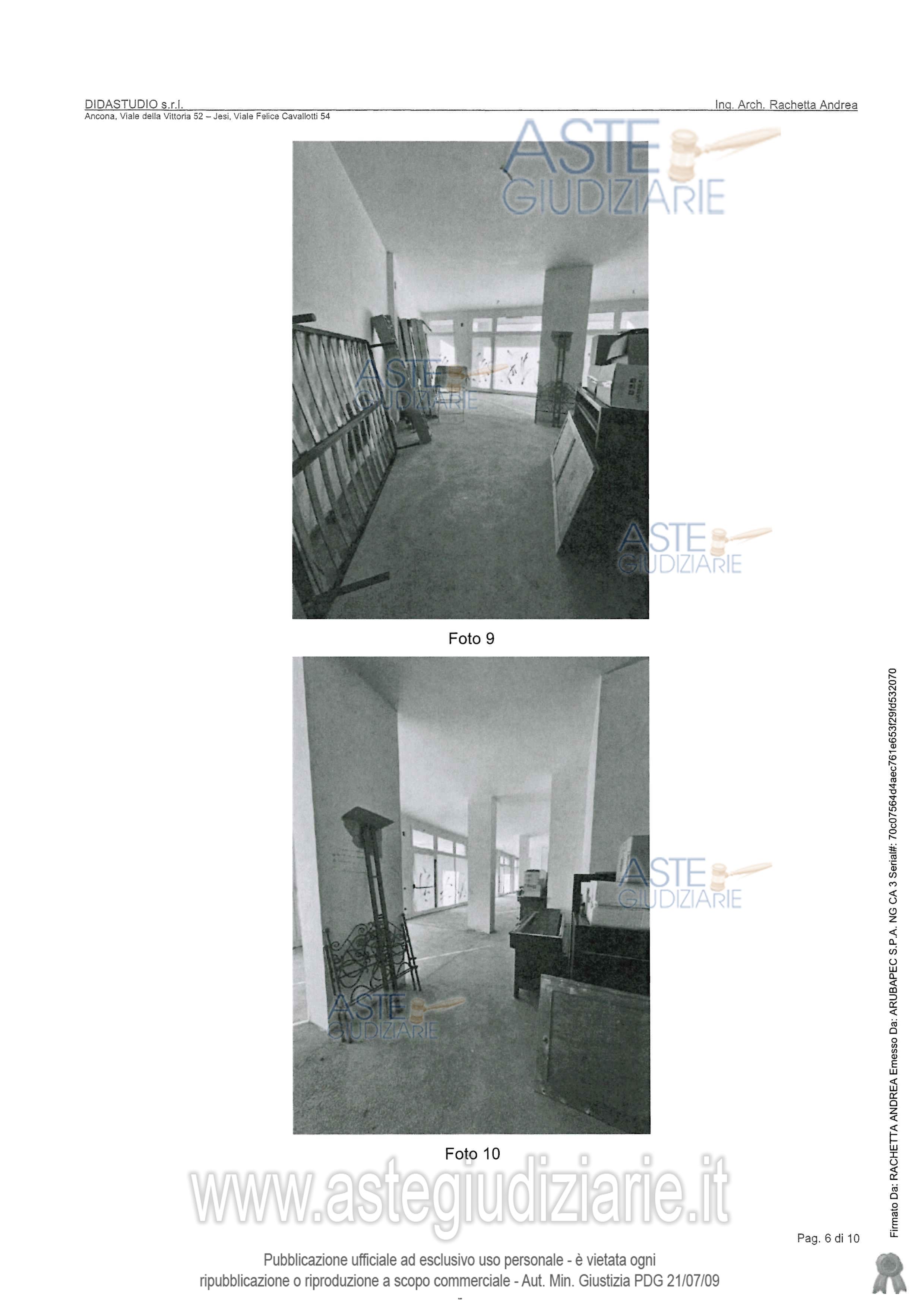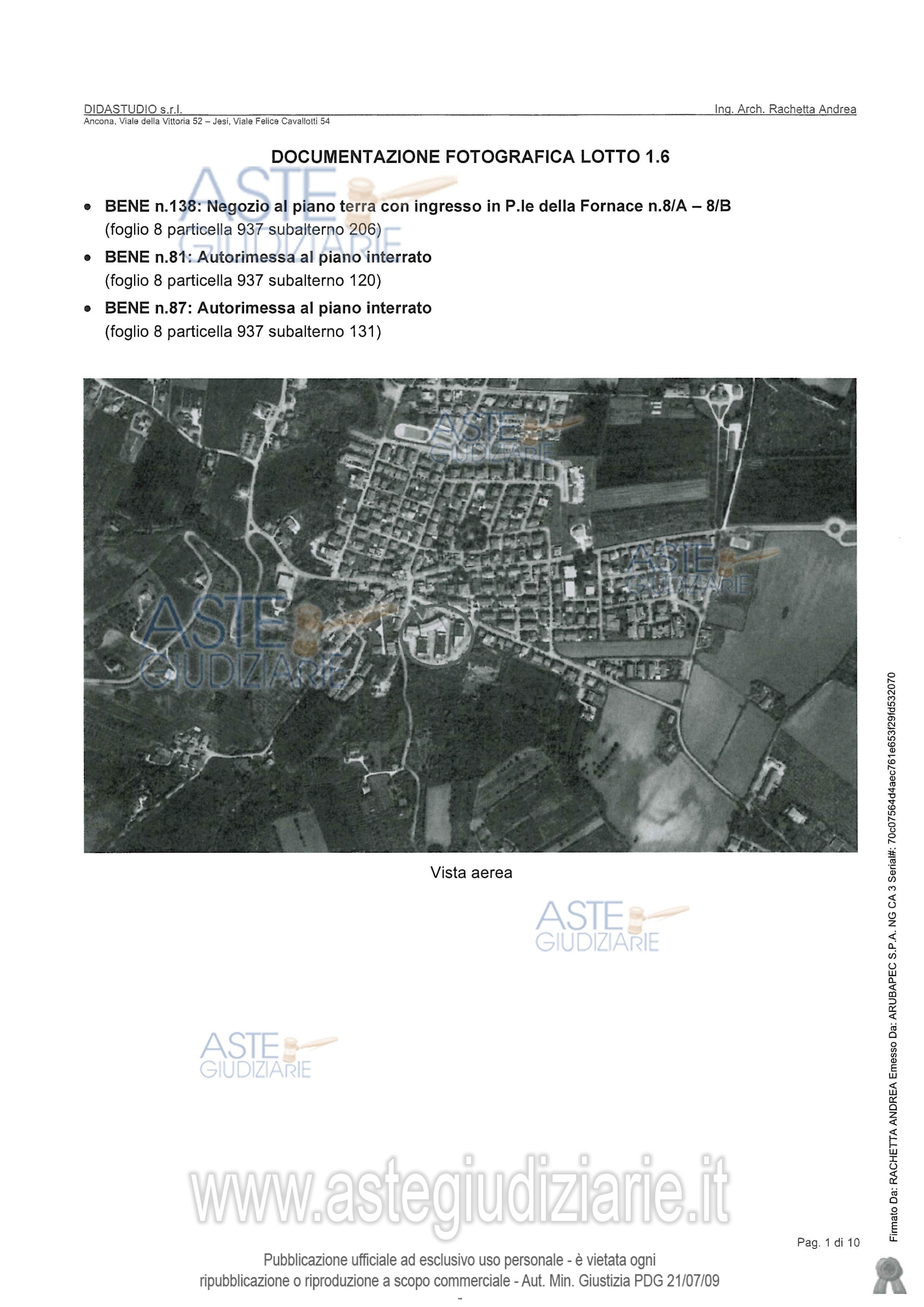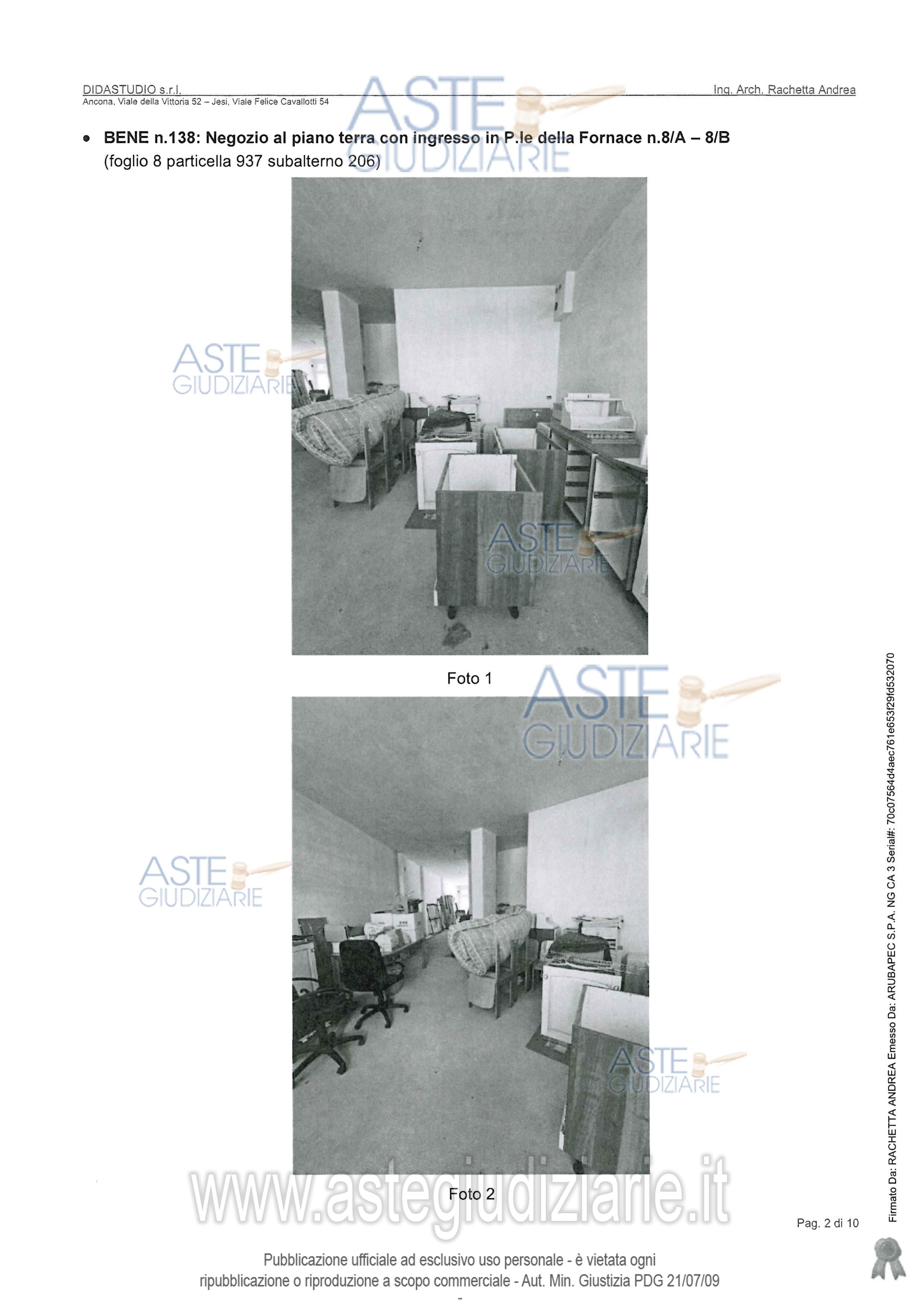 Vendita all'asta Senza incanto, con gara telematica asincrona - LOTTO 6: LOTTO 6 (in perizia lotto 1.6).Negozio (bene n. 138) facente parte del “Blocco C”, posto al piano terra, con accesso ai civici 8/A e 8/B di Piazzale della Fornace, con annessi due box auto (beni n. 81 e n. 87) posti al piano interrato. Prezzo base € 67.837,00 (offerta minima € 50.878,00). Data inizio operazioni di vendita: 11/12/2025 ore 11:00. Giudice Giuliana Filippello. Professionista delegato alla vendita Not. Luigi Olmi - Email "esecuzioni@studionotarilebucciolmi.it"; Tel. 071206866. Custode Giudiziario Avv. Gianluca Spinsanti - Email "g.spinsanti@studiolegalerossini.eu"; Tel. 0712075613. Rif. Tribunale di Ancona - Espropriazione immobiliare (cartabia) n. 41/2024