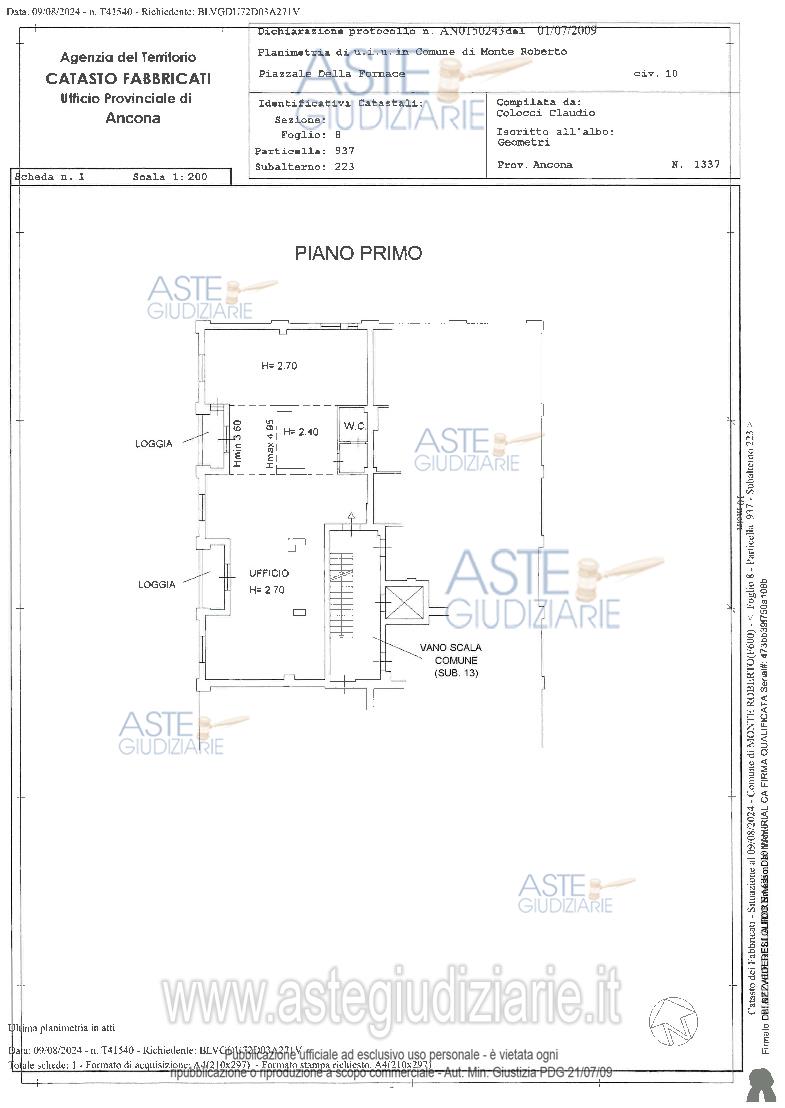 Vendita in attesa dell'emissione del nuovo bando d'asta. LOTTO 82: LOTTO 82 (in perizia lotto 2.10).Ufficio (bene n. 148) facente parte del “Blocco D”, posto al piano primo, con accesso dai civici n. 10/F-10/H-10/I di Piazzale della Fornace, con annesso box auto (bene n. 61) al piano interrato. Ultimo prezzo base € 87.600,00 (offerta minima € 65.700,00). Giudice Giuliana Filippello. Professionista delegato alla vendita Not. Luigi Olmi - Email "esecuzioni@studionotarilebucciolmi.it"; Tel. 071206866. Custode Giudiziario Dott. Elisa Biondini - Email "info@studiobiondini.it"; Tel. 0731215523. Rif. Tribunale di Ancona - Espropriazione immobiliare (cartabia) n. 41/2024