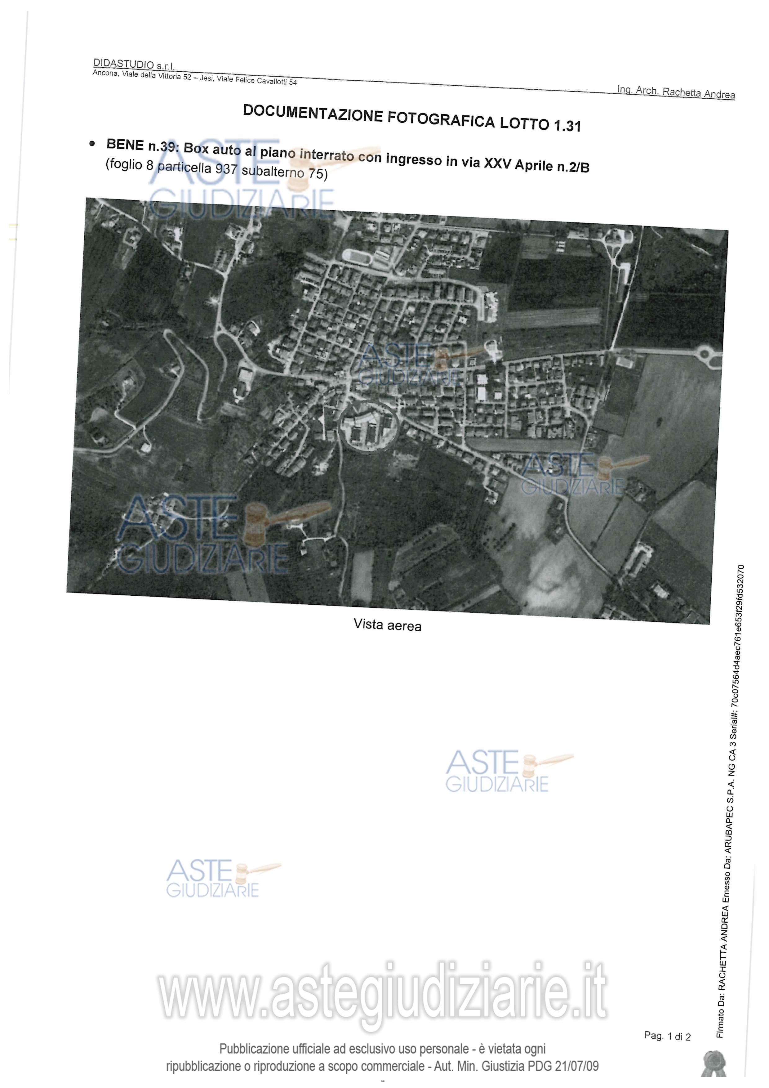 Vendita all'asta Senza incanto, con gara telematica asincrona - LOTTO 31: LOTTO 31: Comprende i lotti 31 - 32 - 33 (in perizia lotti 1.31 - 1.32 - 1.33) Trattasi 3 box auto. Prezzo base € 9.913,00 (offerta minima € 7.435,00). Data inizio operazioni di vendita: 19/03/2026 ore 09:00. Professionista delegato alla vendita Not. Luigi Olmi. Custode Giudiziario Dott. Elisa Biondini - Email "info@studiobiondini.it". Rif. Tribunale di Ancona - Espropriazione immobiliare (cartabia) n. 41/2024