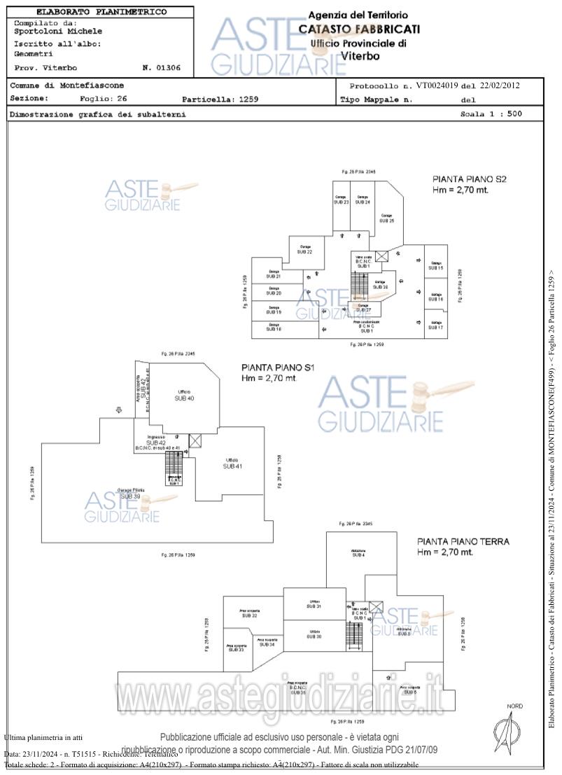 Vendita all'asta Senza incanto, con gara telematica asincrona - LOTTO 3: Piena proprietà su area ad uso autorimessa al piano sotto-strada di mq 542,00 circa, meglio descritta in avviso di vendita. Prezzo base € 61.209,00 (offerta minima € 45.907,00). Data inizio operazioni di vendita: 11/06/2026 ore 13:30. Professionista delegato alla vendita: Not. Giulia Maria Delfino - Email "info@asnoviri.it"; Tel. 0761/351236.