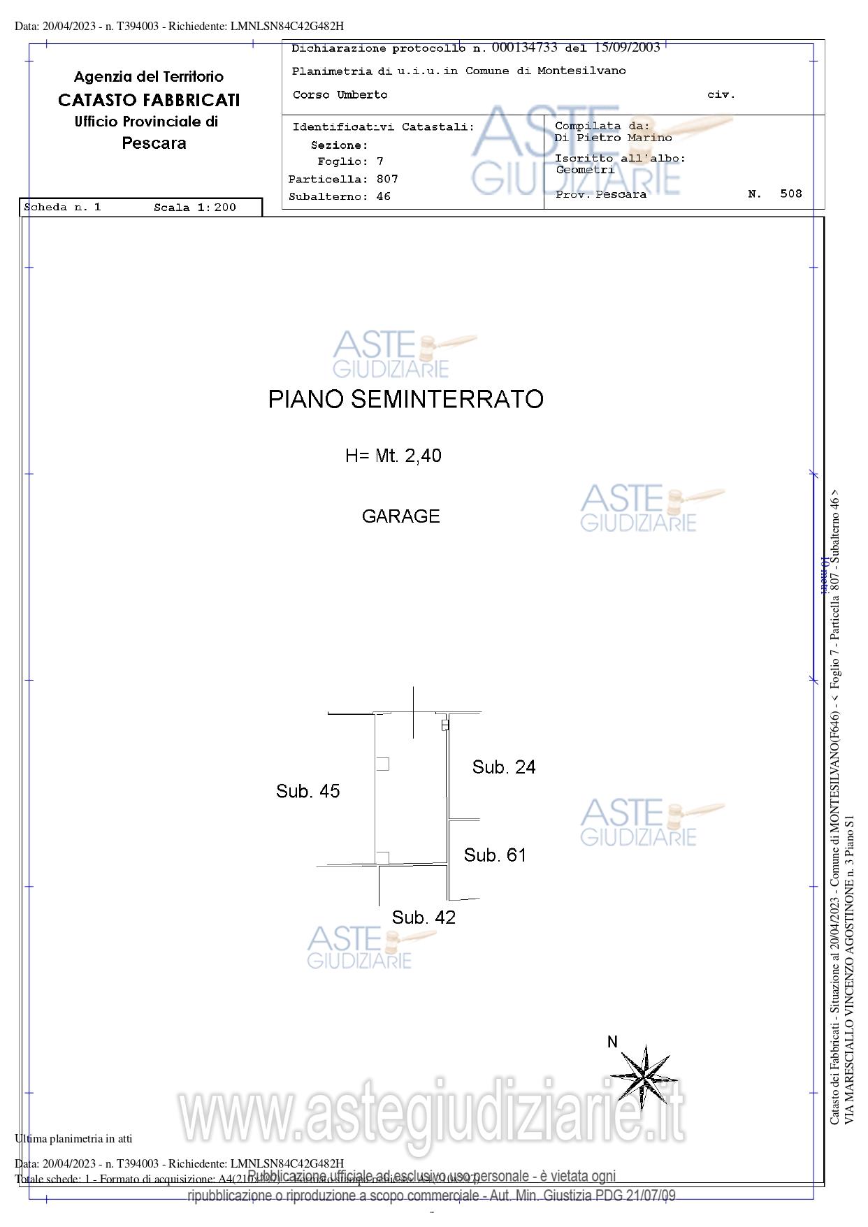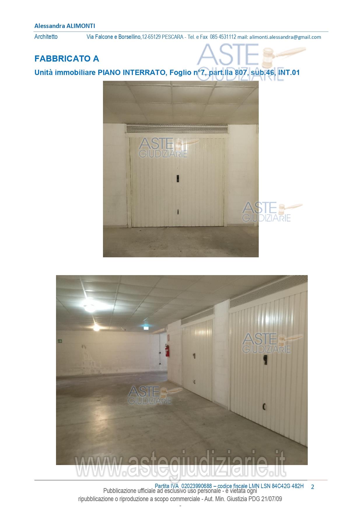 Vendita all'asta Senza incanto, con gara telematica asincrona - LOTTO 22: Unità adibita ad uso autorimessa che si sviluppa al piano seminterrato . Prezzo base € 17.646,83 (offerta minima € 13.235,12). Data inizio operazioni di vendita: 03/03/2026 ore 15:00. Giudice Dott. Daniela Angelozzi. Professionista delegato alla vendita Avv. Cristian Catapano - Email "cristian.catapano@libero.it". Custode Giudiziario Avv. Cristian Catapano - Email "cristian.catapano@libero.it". Rif. Tribunale di Pescara - Esecuzione immobiliare post legge 80 n. 210/2022