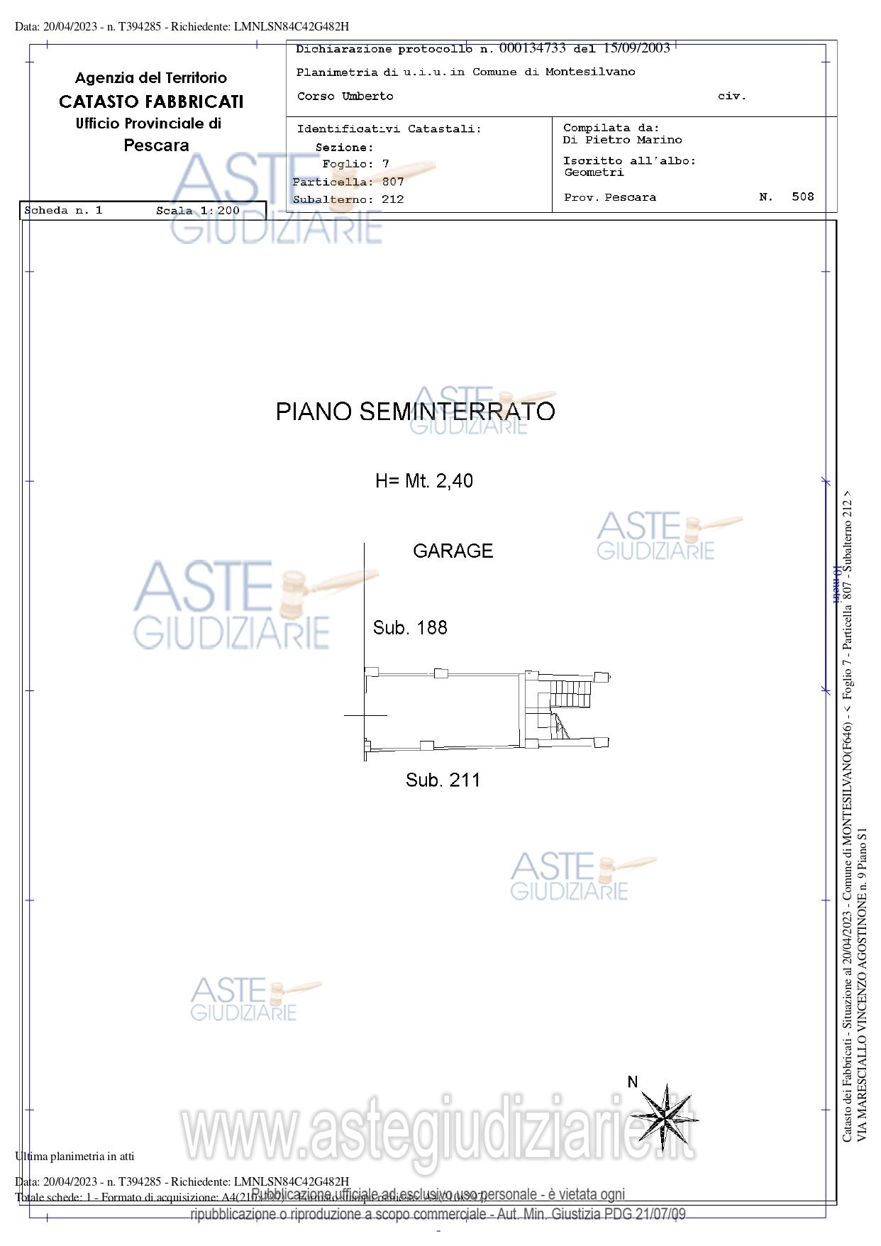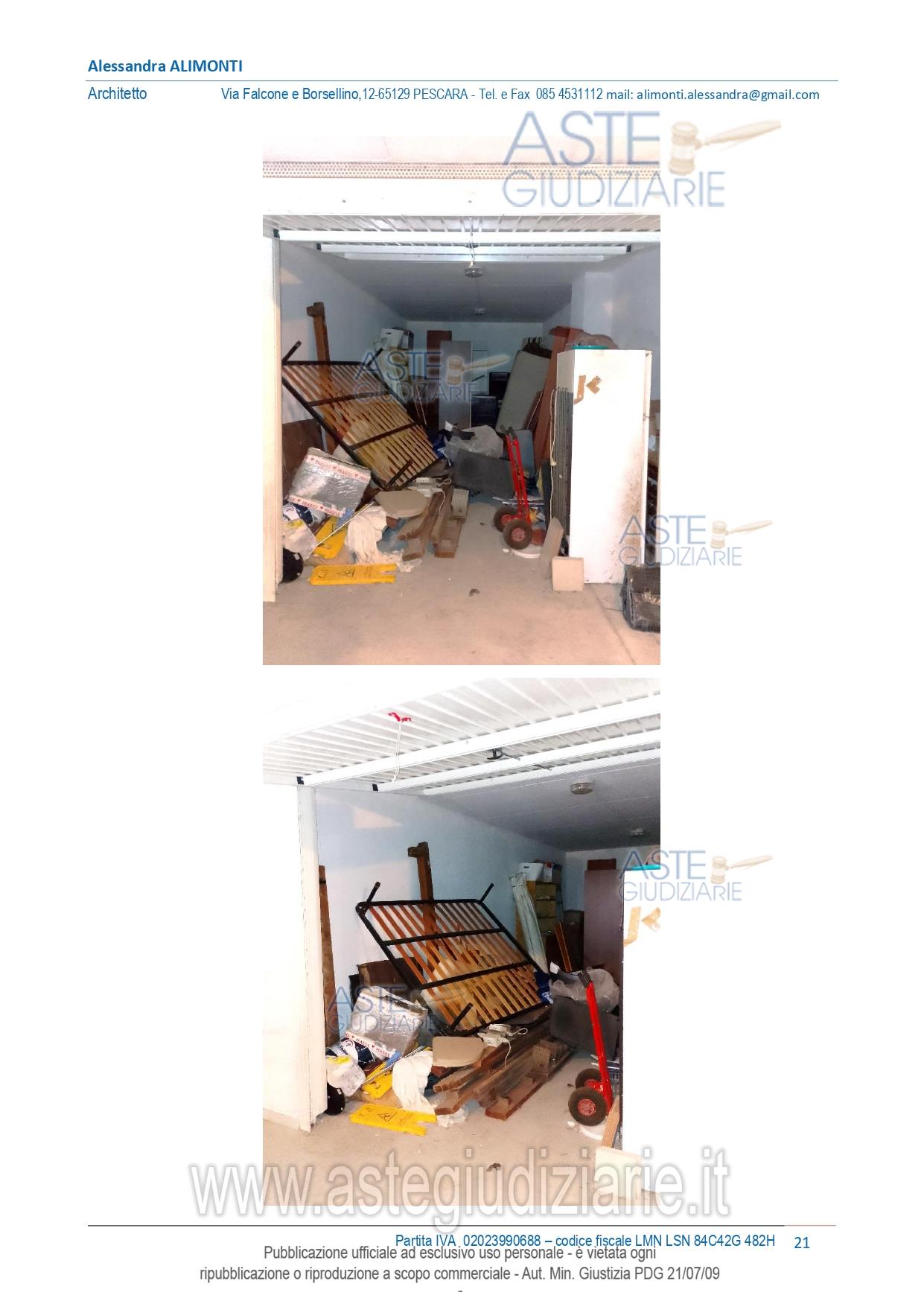 Vendita all'asta Senza incanto, con gara telematica asincrona - LOTTO 27: Unità adibita ad uso autorimessa che si sviluppa al piano seminterrato. Prezzo base € 19.433,34 (offerta minima € 14.575,01). Data inizio operazioni di vendita: 03/03/2026 ore 15:00. Giudice Dott. Daniela Angelozzi. Professionista delegato alla vendita Avv. Cristian Catapano - Email "cristian.catapano@libero.it". Custode Giudiziario Avv. Cristian Catapano - Email "cristian.catapano@libero.it". Rif. Tribunale di Pescara - Esecuzione immobiliare post legge 80 n. 210/2022