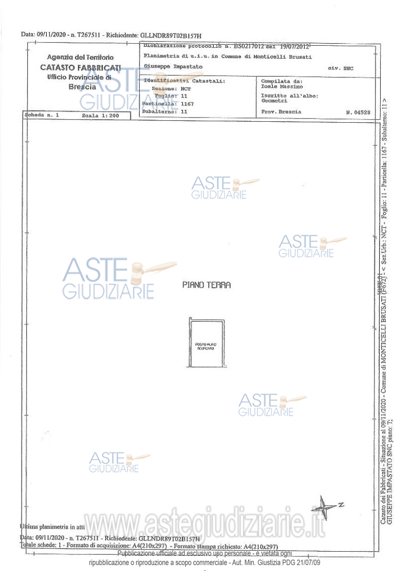 Vendita all'asta Senza incanto, con gara telematica asincrona - LOTTO 8: Lotto 8 (lotto 7 della perizia pe 534/2020). Posto auto scoperto al piano terra. Competono le proporzionali quote delle parti comuni. Prezzo base € 2.214,84 (offerta minima € 1.661,13). Data inizio operazioni di vendita: 28/01/2026 ore 10:00. Professionista delegato alla vendita Not. Daniela Masucci. Custode Giudiziario Not. Daniela Masucci - Email "visiteimmobili@anpebrescia.it". Rif. Tribunale di Brescia - Esecuzione immobiliare post legge 80 n. 852/2018