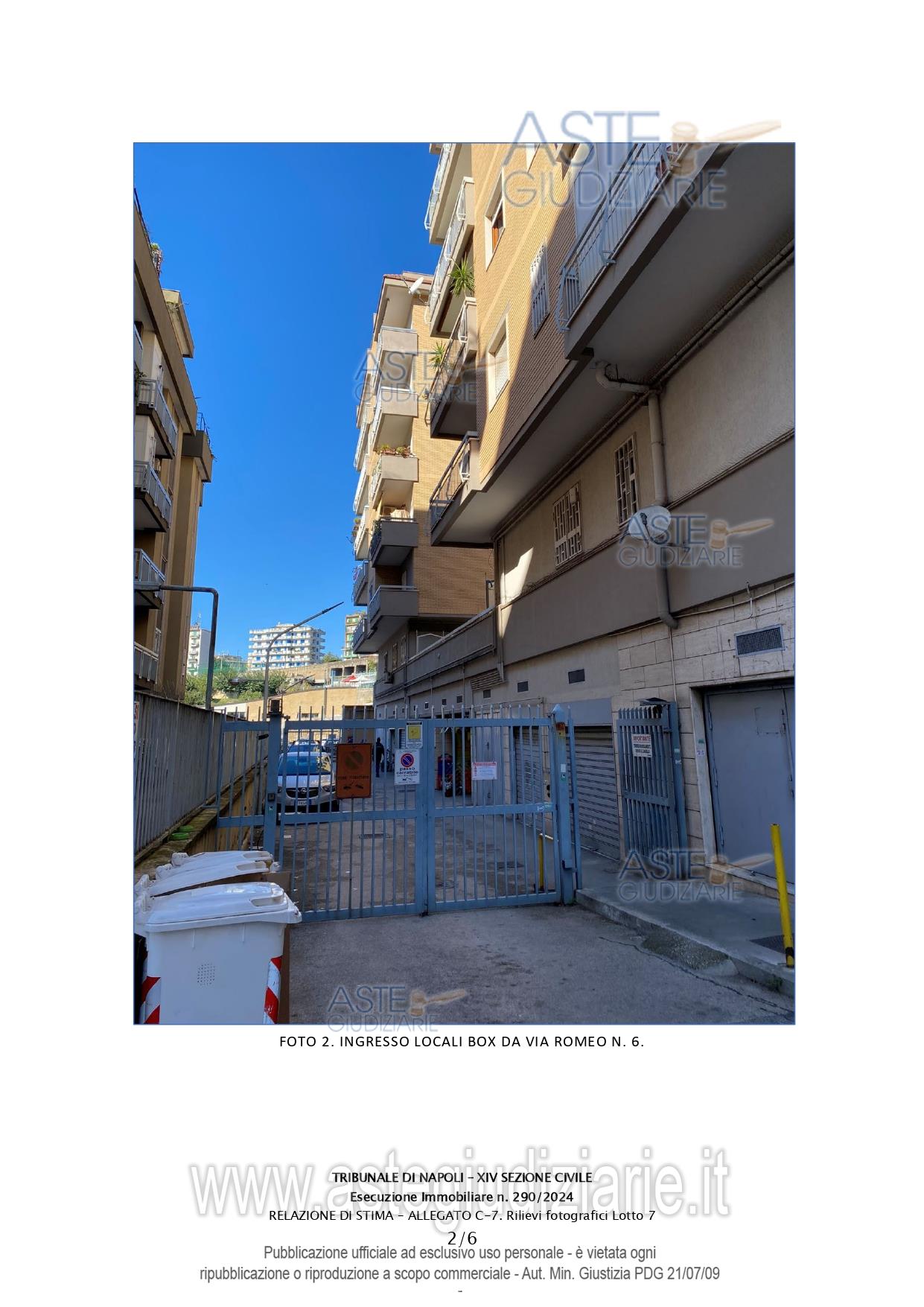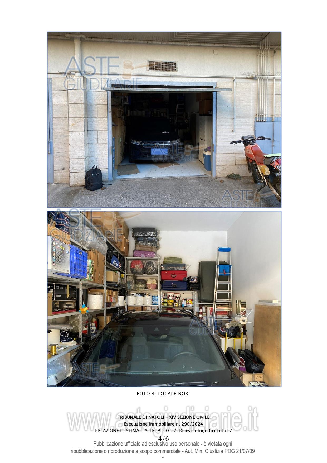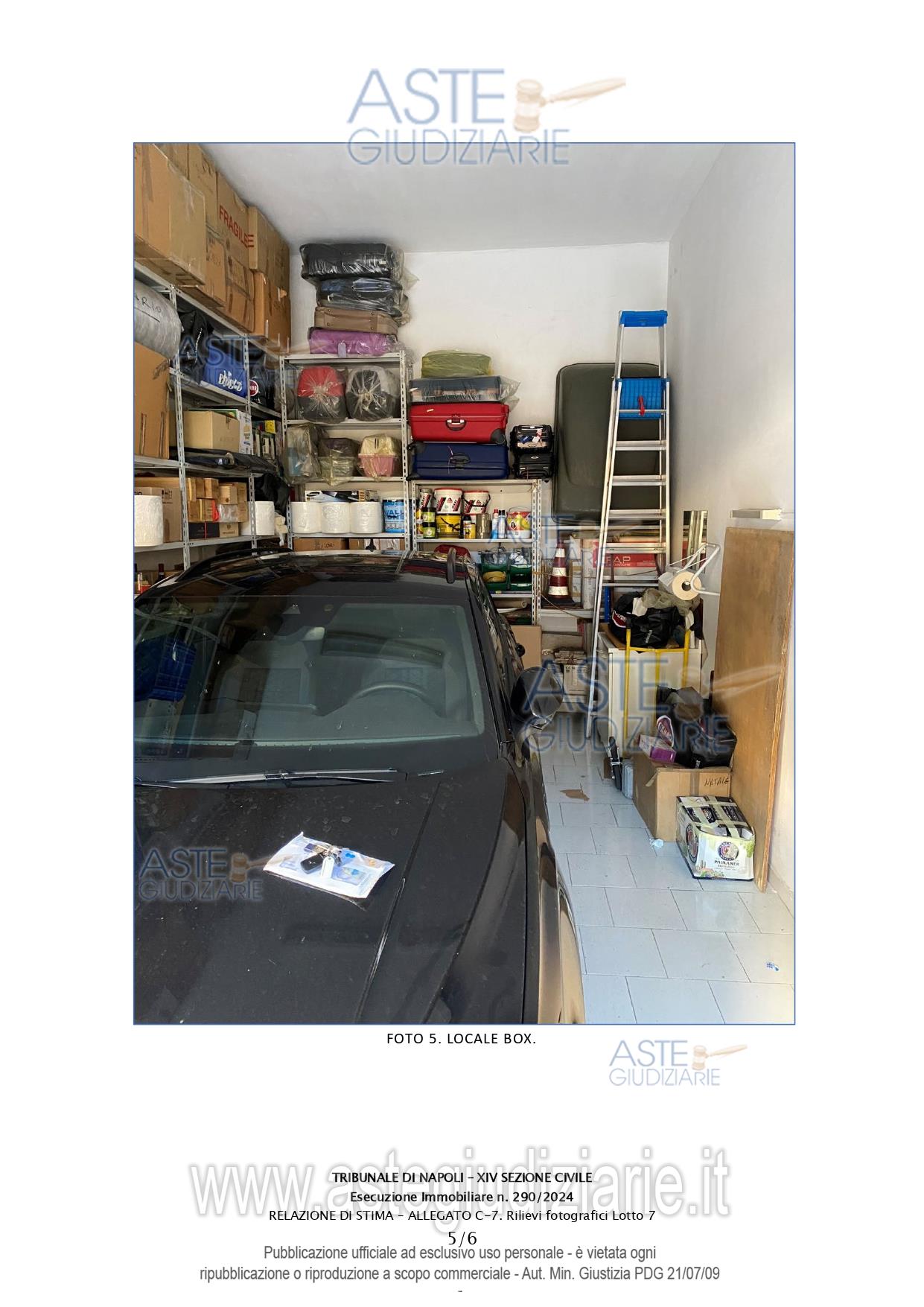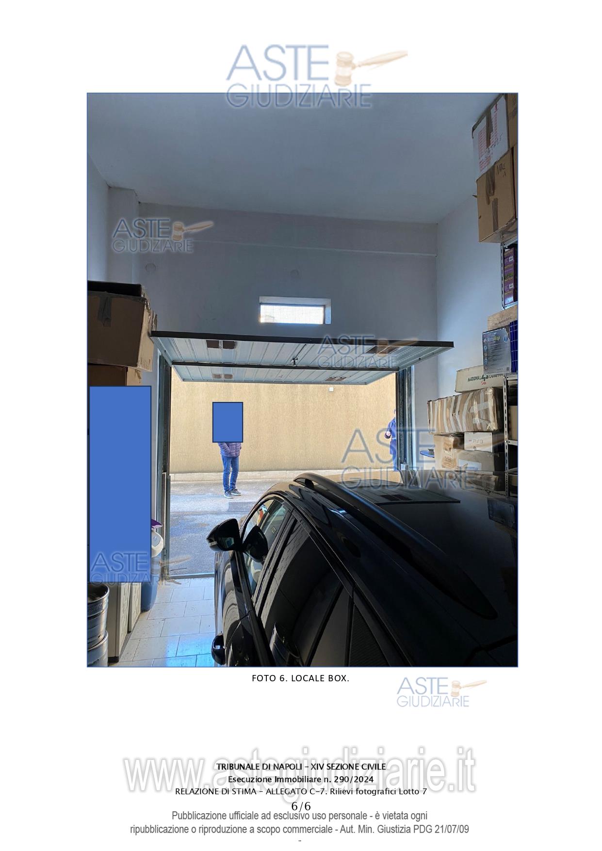 Vendita all'asta Senza incanto, con gara telematica asincrona - LOTTO 7: Box auto della consistenza di 21 mq commerciali. Prezzo base € 40.000,00 (offerta minima € 30.000,00). Data inizio operazioni di vendita: 24/03/2026 ore 16:00. Giudice Dott. Miriam Valenti. Professionista delegato alla vendita Dott. Salvatore Bonagura - Email "studiobonagura@libero.it"; Cell. 3286530845; Tel. 0815518985. Custode Giudiziario Dott. Salvatore Bonagura - Email "studiobonagura@libero.it"; Cell. 3286530845; Tel. 0815518985. Rif. Tribunale di Napoli - Espropriazione immobiliare (cartabia) n. 290/2024