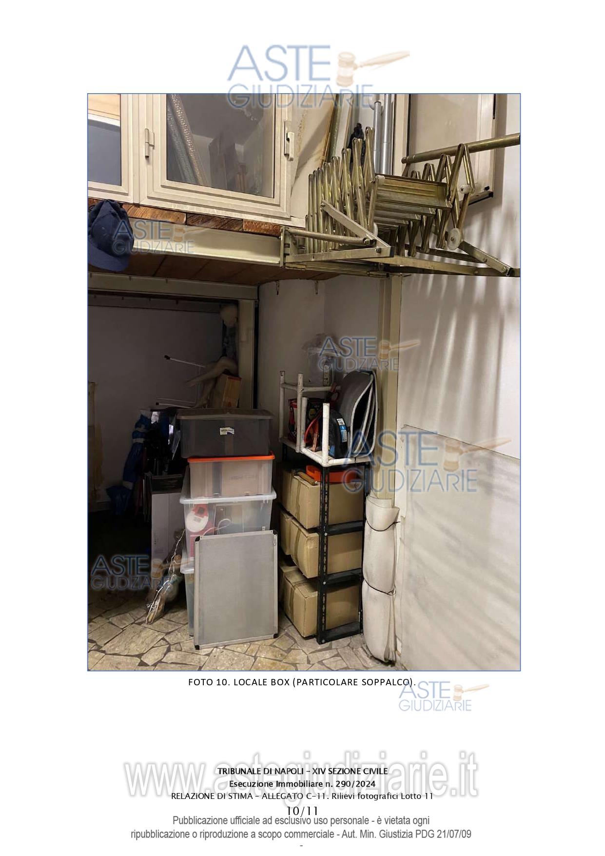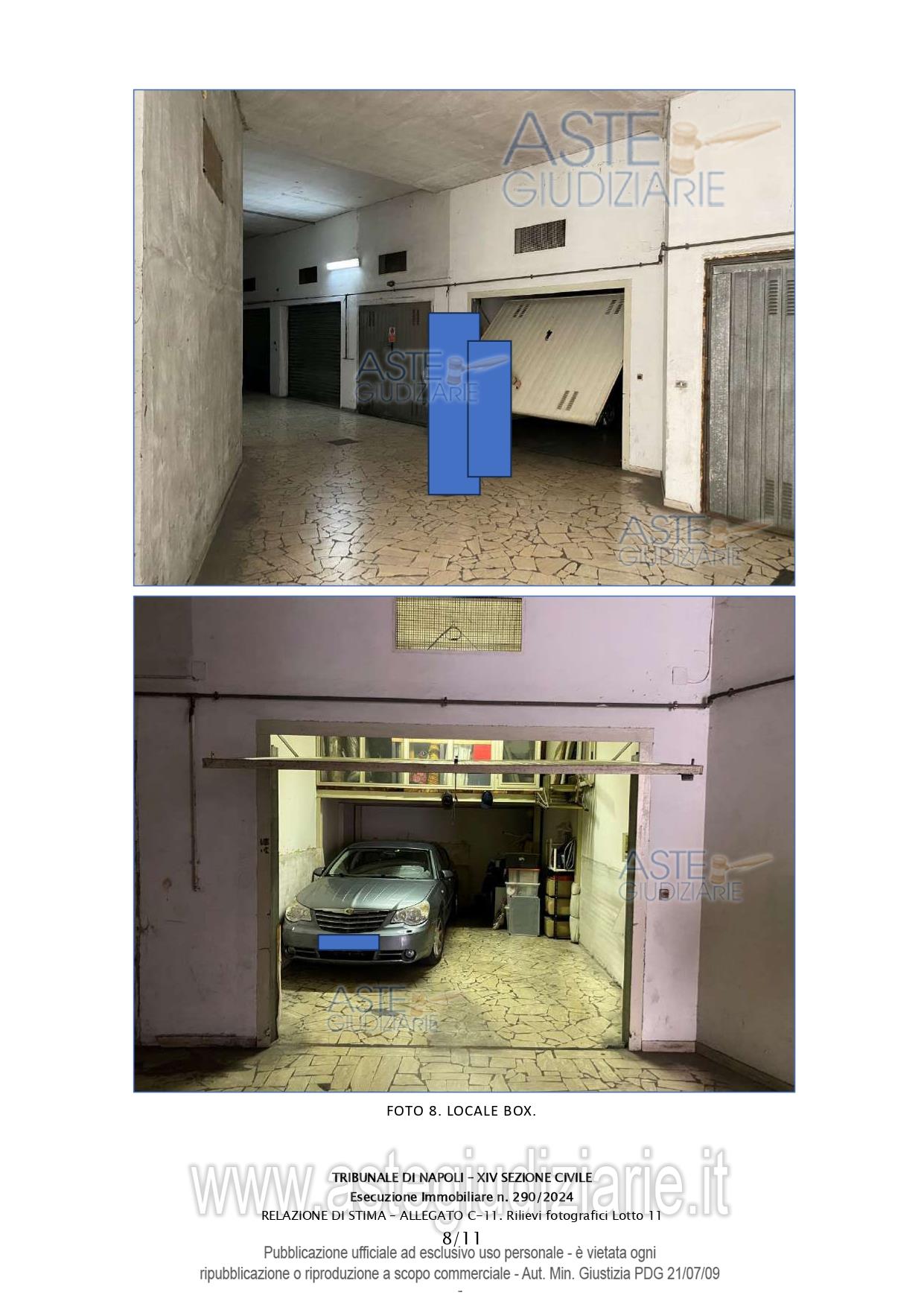 Vendita all'asta Senza incanto, con gara telematica asincrona - LOTTO 11: Box auto della consistenza di 27 mq commerciali. Prezzo base € 45.000,00 (offerta minima € 33.750,00). Data inizio operazioni di vendita: 24/03/2026 ore 16:00. Giudice Dott. Miriam Valenti. Professionista delegato alla vendita Dott. Salvatore Bonagura - Email "studiobonagura@libero.it"; Cell. 3286530845; Tel. 0815518985. Custode Giudiziario Dott. Salvatore Bonagura - Email "studiobonagura@libero.it"; Cell. 3286530845; Tel. 0815518985. Rif. Tribunale di Napoli - Espropriazione immobiliare (cartabia) n. 290/2024