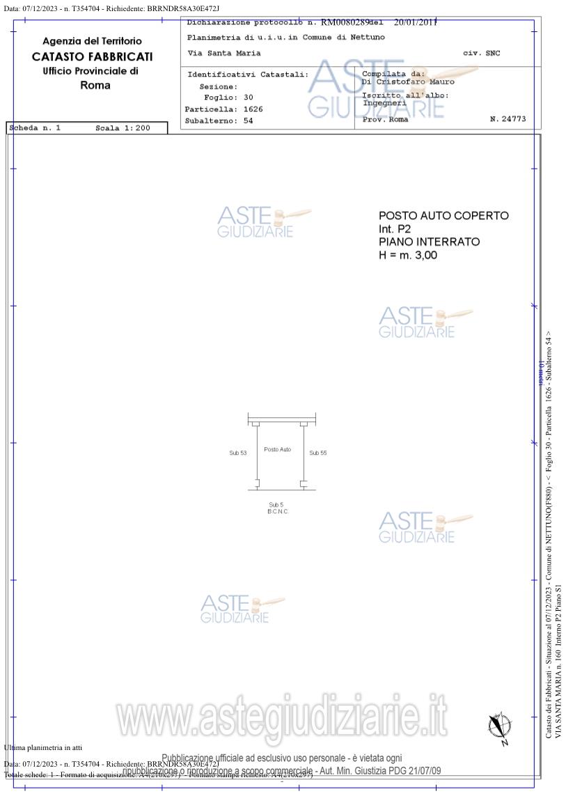 Vendita all'asta Senza incanto, con gara telematica asincrona - LOTTO 2: Posto auto coperto, ubicato in Nettuno (Rm), Via Santa Maria n. 160, piano S1, int. P2, della consistenza di mq. 17 , facente parte di un fabbricato che si eleva per cinque piani. Prezzo base € 872,00 (offerta minima € 654,00). Data inizio operazioni di vendita: 28/05/2026 ore 14:15. Professionista delegato alla vendita Avv. Corrado. Custode Giudiziario Avv. Corrado - Email "avvocatocorrado@gmail.com"; Cell. 3384059488; Tel. 069875725. Rif. Tribunale di Velletri - Espropriazione immobiliare (cartabia) n. 257/2023