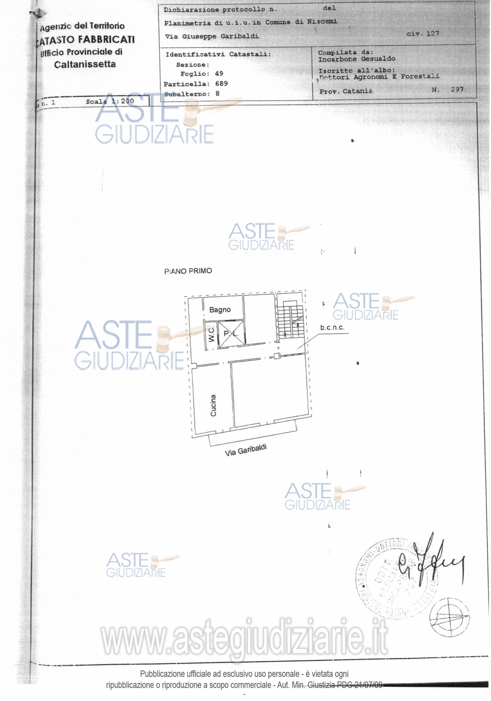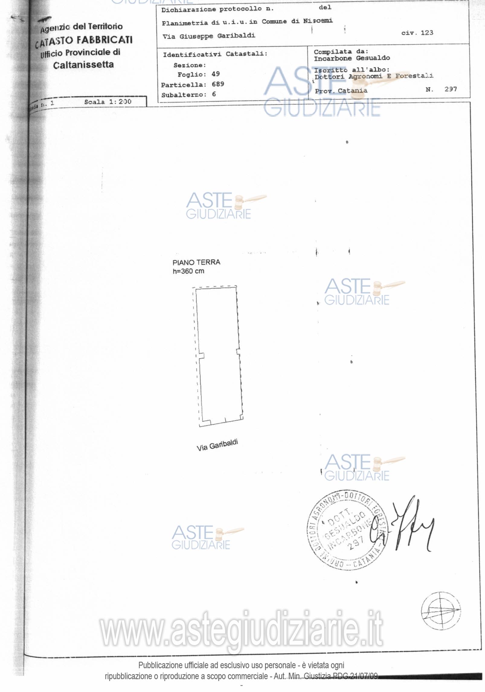 Vendita all'asta Senza incanto, con gara telematica sincrona mista - LOTTO 1: garage sito in Niscemi Via Garibaldi 119 identificata catastalmente al catasto urbano di Niscemi al foglio 49, composto dalla particella 689 sub.6, categoria C/6, classe 2, mq.47,00 rendita €.158,97 e dalla particella 689 sub.7. categoria C/6, classe 2, mq.47,00 rendita €.167,33. . Prezzo base € 14.410,82 (offerta minima € 10.808,11). Data vendita 19/12/2025 ore 12:00. Professionista delegato alla vendita Avv. Enzo Mattia - Email "enmatt61@gmail.com"; Cell. 3398106133; Tel. 093355669. Custode Giudiziario Avv. Enzo Mattia - Email "enmatt61@gmail.com"; Cell. 3398106133; Tel. 093355669. Rif. Tribunale di Caltagirone - Esecuzione immobiliare post legge 80 n. 43/1995