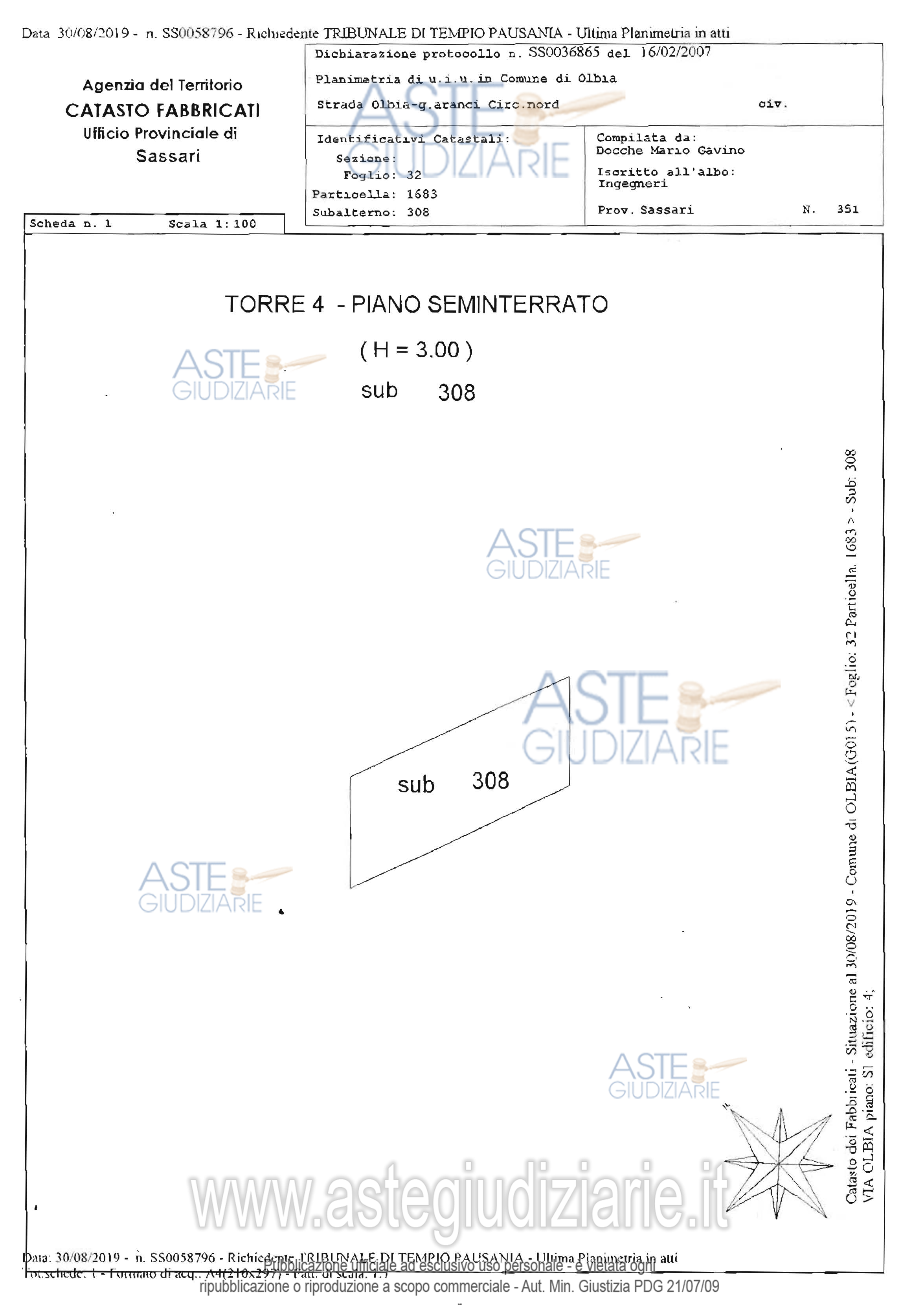Vendita all'asta Senza incanto, con gara telematica asincrona - LOTTO 11: Lotto 11: Posto auto coperto distinto al Catasto Fabbricati al Fg. 32, Part. 1683, Sub. 308, categoria catastale C/6, classe 1, consistenza mq 12, superficie catastale totale mq 12;. Prezzo base € 2.354,25 (offerta minima € 1.765,70). Data inizio operazioni di vendita: 16/06/2026 ore 16:00. Giudice Dott. Alessandro Di Giacomo. Professionista delegato alla vendita Avv. Roberto Cossu - Email "avv.robertocossu@gmail.com"; Tel. 0792071434. Custode Giudiziario Ivg Tempio Pausania - Email "visite.ivgtempio@gmail.com"; Tel. 079630505. Rif. Tribunale di Tempio Pausania - Esecuzione immobiliare post legge 80 n. 295/2016