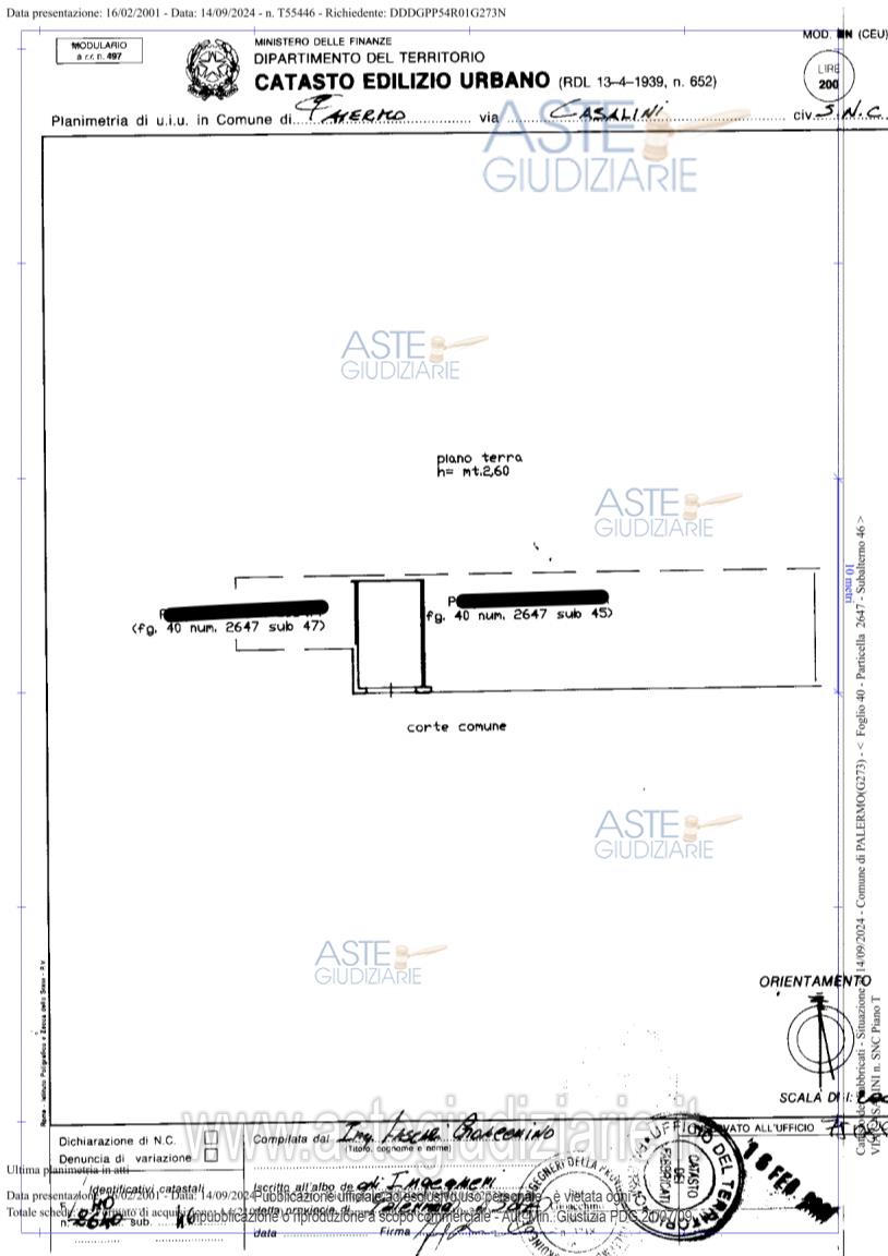 Vendita all'asta Senza incanto, con gara telematica sincrona mista - LOTTO 3: Lotto C: piena e intera proprietà (quota 1/1) di un box auto, sito in Palermo, via U.R. 10 n. 2 (traversa di via Casalini-quartiere Uditore/Passo di Rigano), censito al Catasto fabbricati del Comune di Palermo, al Foglio 40, particella 2647, sub. 46, Z.C. 2, cat. C/6, cl. 7, cons. mq. 15, P.T. Prezzo base € 13.000,00 (offerta minima € 9.750,00). Data vendita 23/01/2026 ore 10:30. Giudice Gigi Omar Modica. Professionista delegato alla vendita Avv. Gabriele Tagliavia - Email "avv.gabrieletagliavia@gmail.com"; Tel. 3208151874. Custode Giudiziario Avv. Gabriele Tagliavia - Email "avv.gabrieletagliavia@gmail.com"; Tel. 3208151874. Rif. Tribunale di Palermo - Espropriazione immobiliare (cartabia) n. 87/2024