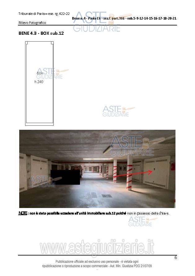 Vendita in attesa dell'emissione del nuovo bando d'asta. LOTTO 9: BOX IN AUTORIMESSA inseriti all’interno di un’autorimessa condominiale posta al piano semi-interrato consistenza mq. 28. Ultimo prezzo base € 16.313,00 (offerta minima € 12.235,00). Giudice Francesca Paola Claris Appiani. Professionista delegato alla vendita Avv. Gaetano Abela - Email "segreteria@studioabela.it"; Tel. 0382538584. Custode Giudiziario Istituto Vendite Giudiziarie Di Pavia - Email "info@ivgpavialodi.it"; Tel. 0382539013. Rif. Tribunale di Pavia - Esecuzione immobiliare post legge 80 n. 422/2022