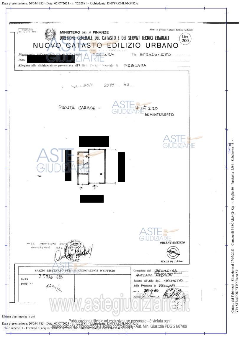 Vendita all'asta Competitiva - LOTTO UNICO: Quota 50% garage al piano seminterrato di mq 34. Prezzo base € 8.160,00 (offerta minima € 8.160,00). Data vendita 08/01/2026 ore 12:00. Curatore Dott. Debora Scurti - Email "scurtidebora@gmail.com". Rif. Tribunale di Pescara - Fallimento n. 76/2014