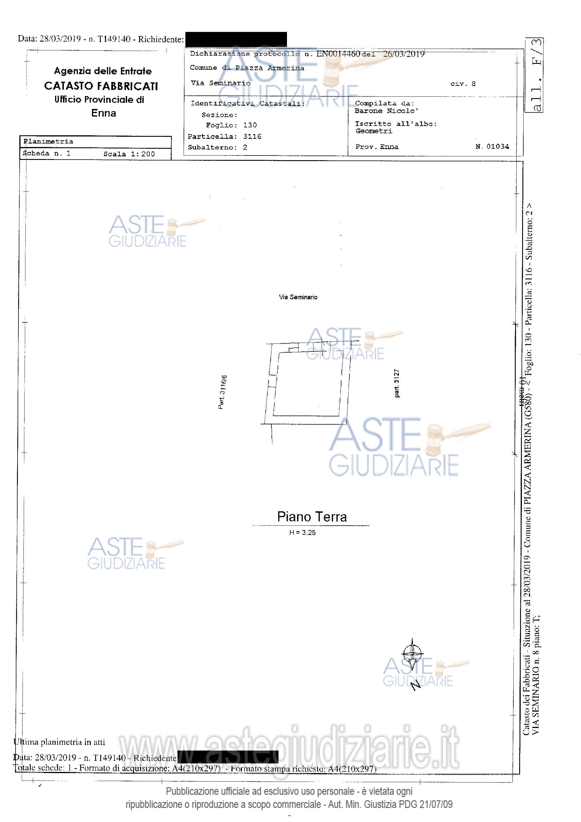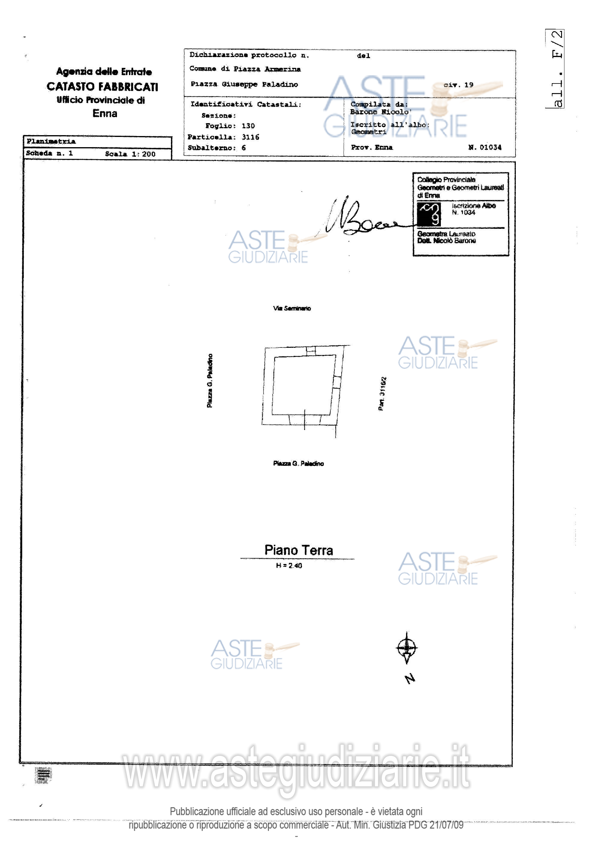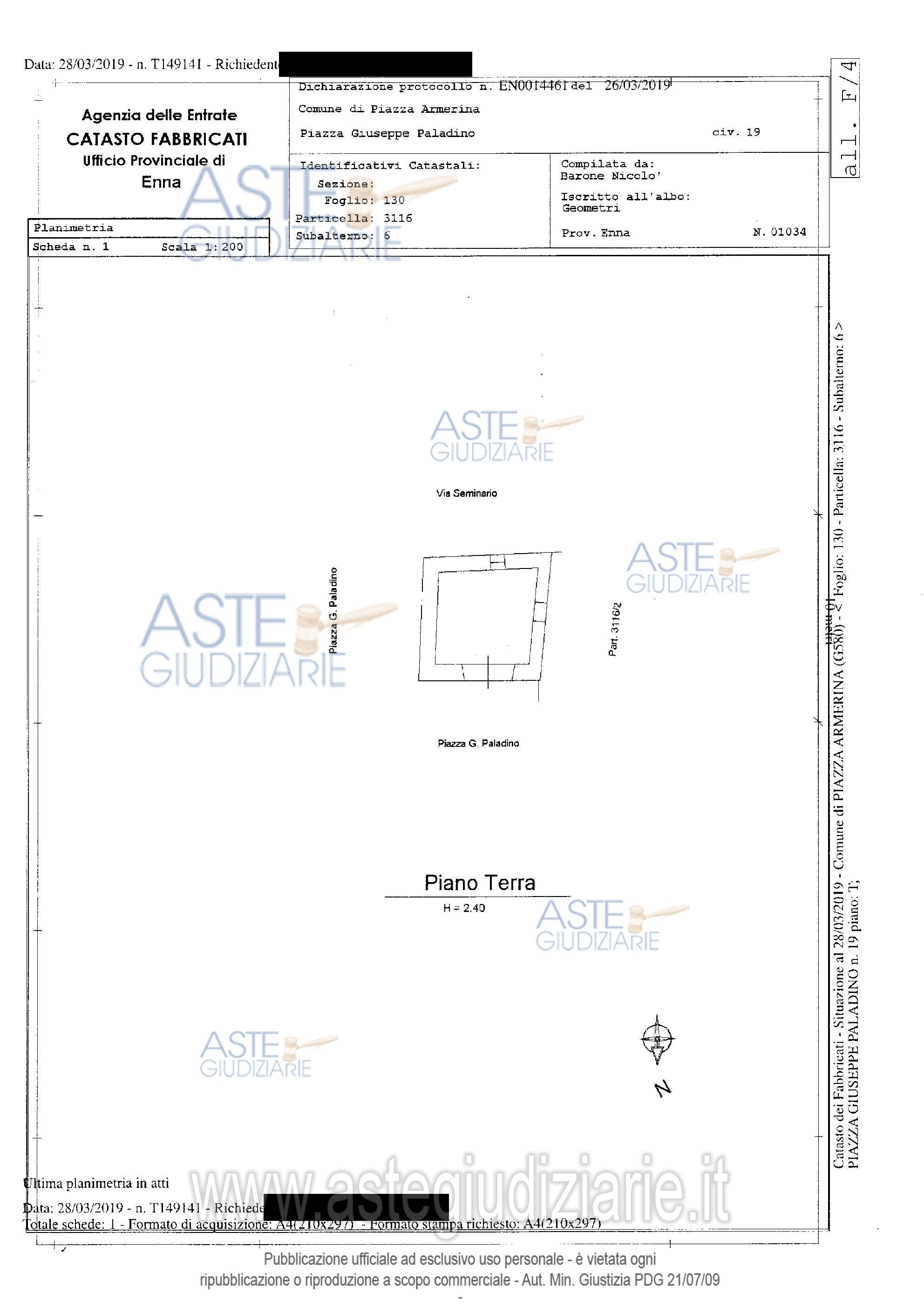 Vendita all'asta Senza incanto, con gara telematica sincrona mista - LOTTO 2: Piena proprietà della rimessa sita in Piazza Armerina nella Via Seminario, n. 8, posto a P.T. con superficie commerciale pari a mq 31,00, in catasto al foglio 130 particella 3116 sub 2; Piena proprietà del locale di deposito, confinante con la suddetta unità immobiliare, utilizzabile anche come autorimessa, sito in Piazza Armerina nella Piazza Palladino, n. 19, con superficie commerciale pari a mq 27,00, in catasto al foglio 130 particella 3116 sub 6. Prezzo base € 9.943,59 (offerta minima € 7.457,69). Data vendita 23/07/2026 ore 09:30. Professionista delegato alla vendita Avv. Giovanni Cannata - Email "giovanni.cannata@avvnicosia.legalmail.it". Custode Giudiziario Avv. Giovanni Cannata - Email "giovanni.cannata@avvnicosia.legalmail.it". Rif. Tribunale di Enna - Esecuzione immobiliare post legge 80 n. 23/2018