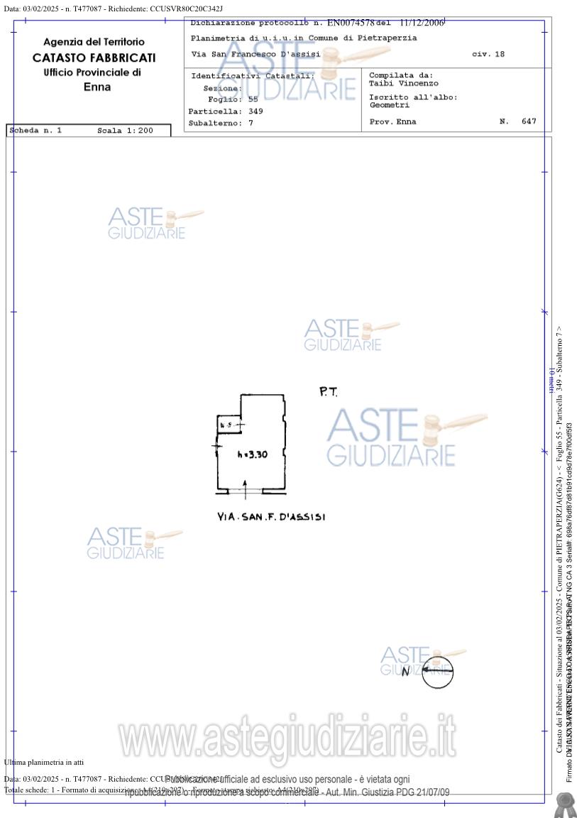 Vendita all'asta Senza incanto, con gara telematica sincrona mista - LOTTO 2: Garage ubicato al piano terra di un fabbricato condominiale, sito in Pietraperzia, Via San Francesco D’Assisi 18. L’immobile risulta distinto al Catasto Fabbricati del Comune di Pietraperzia al foglio 55 mappale 349 sub 7, categoria C/6, classe 6, consistenza 28 mq, rendita catastale euro 85,32. Prezzo base € 9.120,00 (offerta minima € 6.840,00). Data vendita 20/05/2026 ore 10:30. Professionista delegato alla vendita Avv. Marco Ferro - Email "avv.marcoferro@gmail.com"; Cell. 3398388921. Custode Giudiziario Avv. Marco Ferro - Email "avv.marcoferro@gmail.com"; Cell. 3398388921. Rif. Tribunale di Enna - Esecuzione immobiliare n. 2/2025