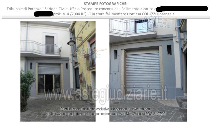 Vendita all'asta Senza incanto - LOTTO 2: -diritti di piena ed intera proprietà (1/1) di un locale autorimessa, sito nel Comune di POTENZA (PZ), alla via Giuseppe Mazzini, piano terra, mq.22. Prezzo base € 19.582,72 (offerta minima € 14.687,04). Data vendita 14/04/2026 ore 10:00. Professionista delegato alla vendita Avv. Francesco Missanelli - Email "francescomissanelli@gmail.com"; Tel. 0971443116. Curatore Dott. Rosangela Coluzzi - Email "rosangela.coluzzi@tin.it"; Tel. 0971273101. Rif. Tribunale di Potenza - Fallimentare n. 4/2004