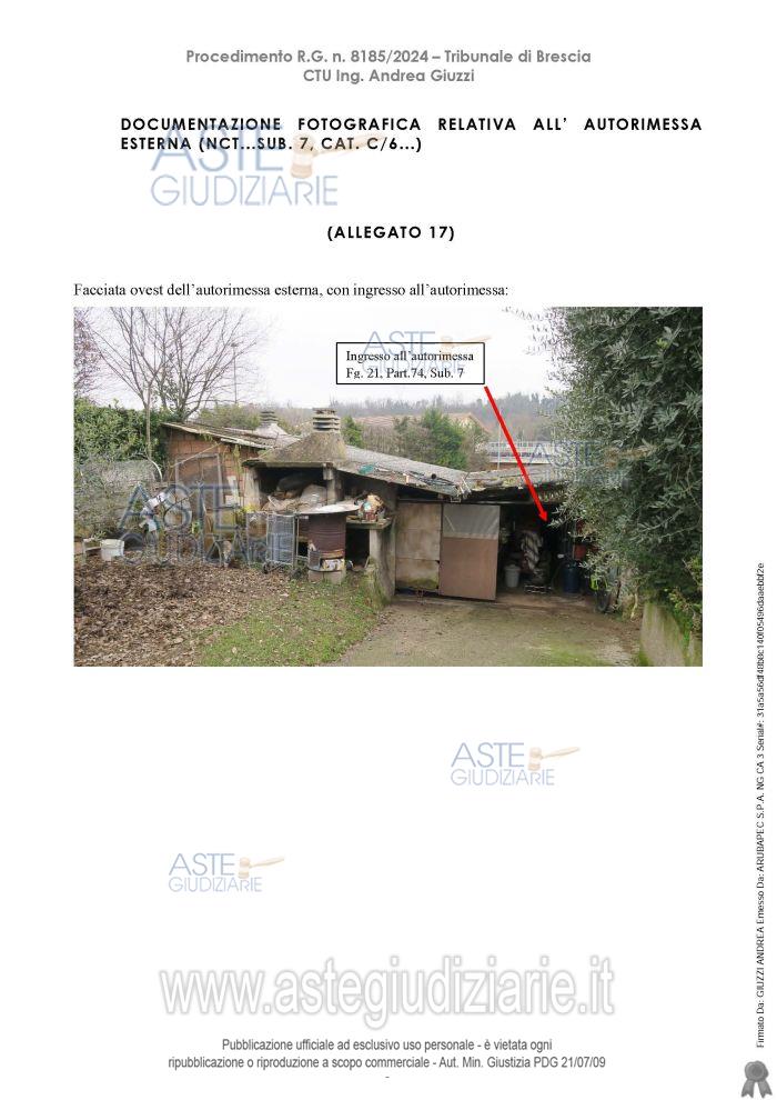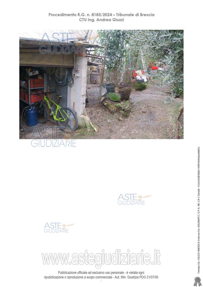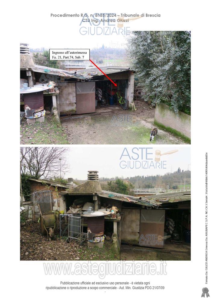 Vendita all'asta Senza incanto, con gara telematica asincrona - LOTTO 2: Piena proprietà di un'autorimessa esterna al complesso abitativo. Prezzo base € 22.500,00 (offerta minima € 16.875,00). Data inizio operazioni di vendita: 06/05/2026 ore 11:00. Professionista delegato alla vendita Dott. Giovanna Mina - Email "gmina@notariato.it"; Tel. 030222849. Custode Giudiziario Dott. Giovanna Mina - Email "visiteimmobili@anpebrescia.it". Rif. Tribunale di Brescia - Contenzioso civile n. 8185/2024