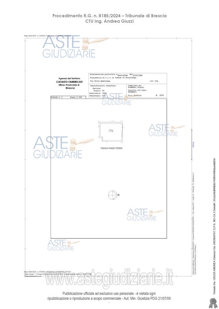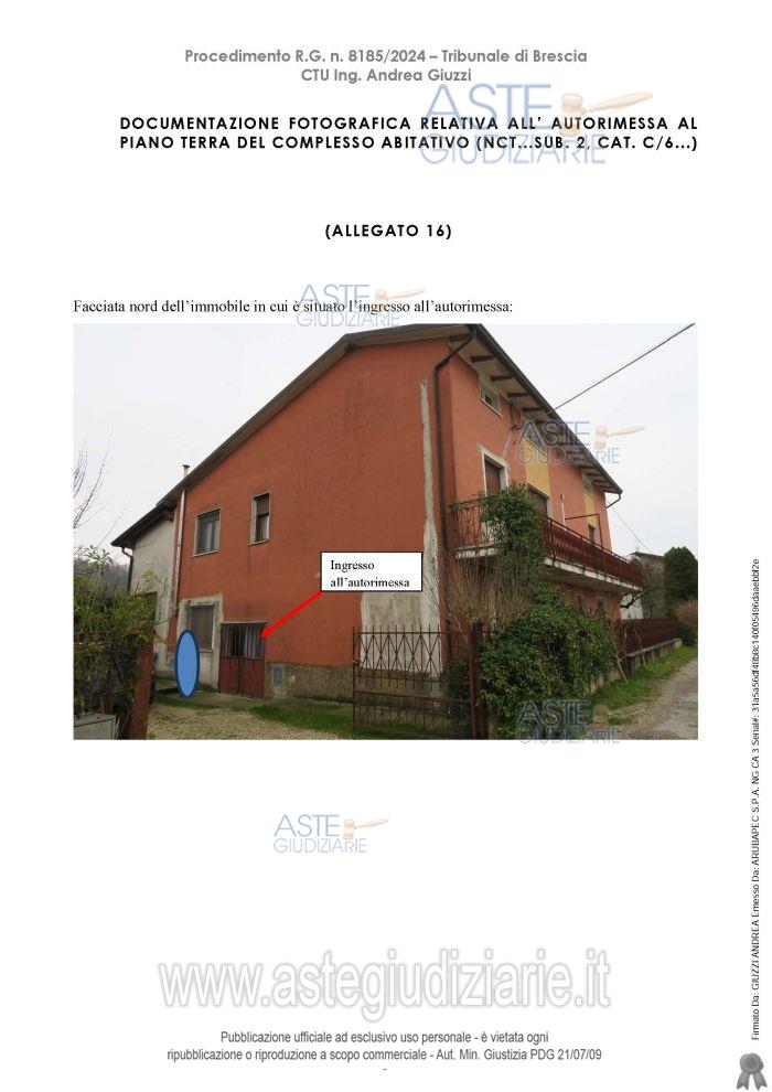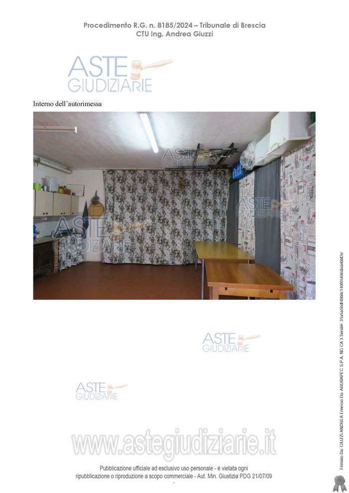 Vendita all'asta Senza incanto, con gara telematica asincrona - LOTTO 1: Piena proprietà di un'autorimessa posta al piano terra e facente parte di un complesso abitativo,. Prezzo base € 31.000,00 (offerta minima € 23.250,00). Data inizio operazioni di vendita: 06/05/2026 ore 11:00. Professionista delegato alla vendita Dott. Giovanna Mina - Email "gmina@notariato.it"; Tel. 030222849. Custode Giudiziario Dott. Giovanna Mina - Email "visiteimmobili@anpebrescia.it". Rif. Tribunale di Brescia - Contenzioso civile n. 8185/2024