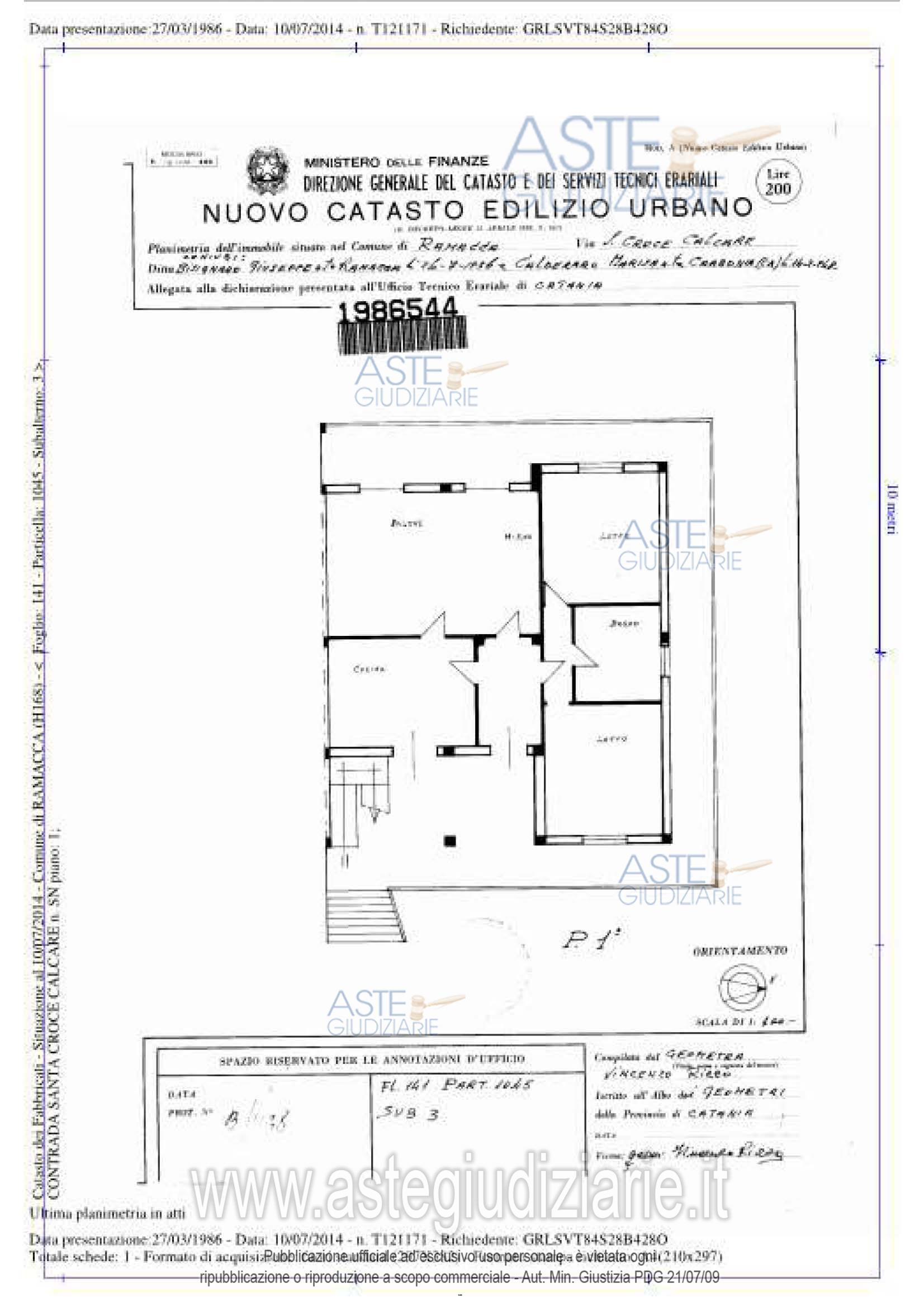 Vendita all'asta Senza incanto - LOTTO 1: immobile, allo stato rustico - adibito ad autorimessa - sito in Ramacca (CT) Via Martin Luther King 22, posto al piano terra, esteso 136 mq. Vi è, altresì, una corte esterna, retrostante l’intero fabbricato, ove insiste un fabbricato non censito, di dimensioni poco rilevanti ed attualmente non sanabile. Censito al N.C.E.U. al fg. 141, part. 1045 sub 7, cat. C/6, Classe 1, Consistenza 136 mq, R.C. euro 337,14, C.da Santa Croce - Calcare n. SN piano T. Prezzo base € 14.319,91 (offerta minima € 10.739,93). Data vendita 27/01/2026 ore 17:00. Professionista delegato alla vendita Avv. Carmelo Bentrovato - Email "cbentrovato@alice.it". Custode Giudiziario Avv. Carmelo Bentrovato - Email "cbentrovato@alice.it". Rif. Tribunale di Caltagirone - Esecuzione immobiliare post legge 80 n. 17/2014