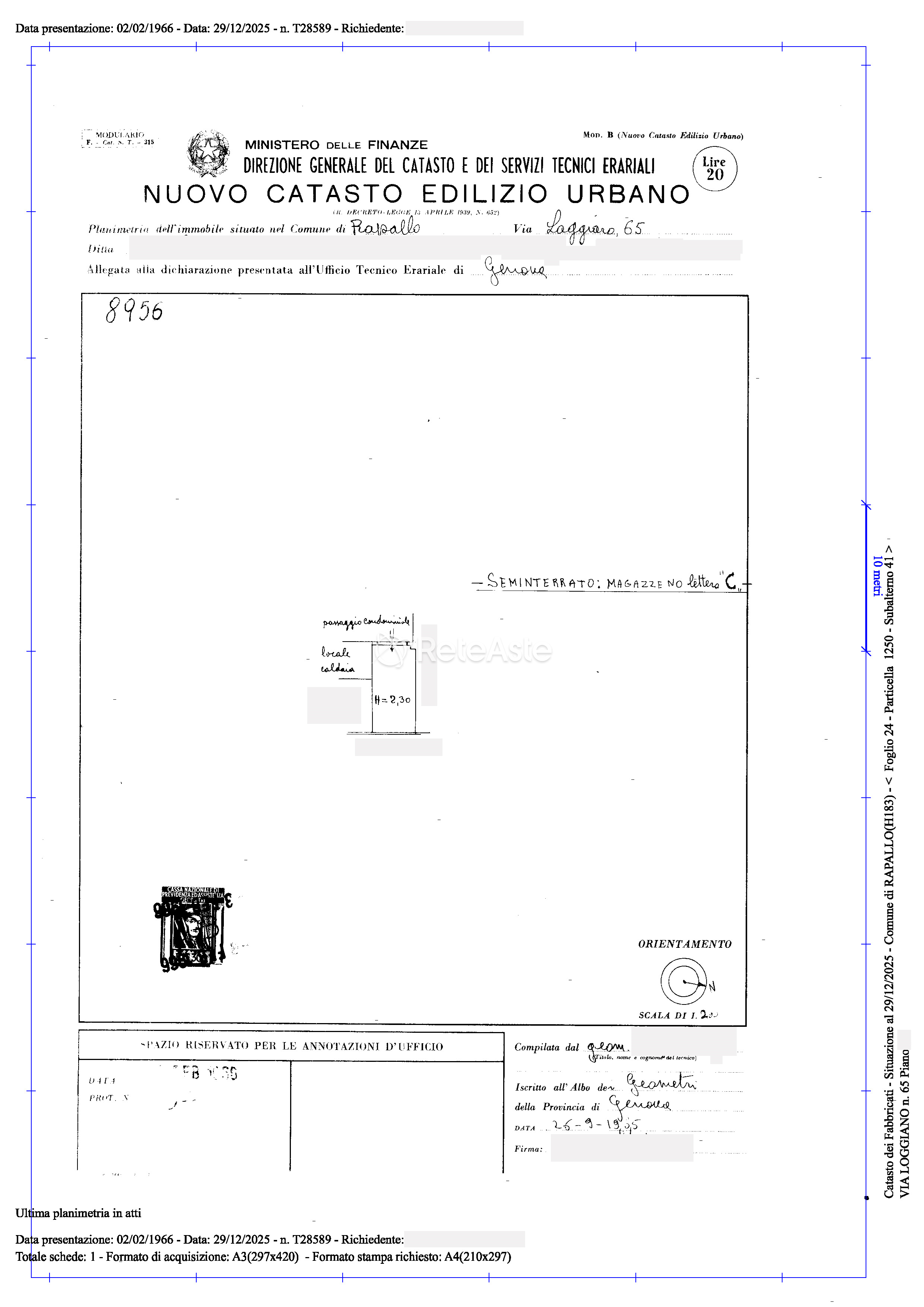 18 sqm car box located in the basement, in the municipality of Rapallo.