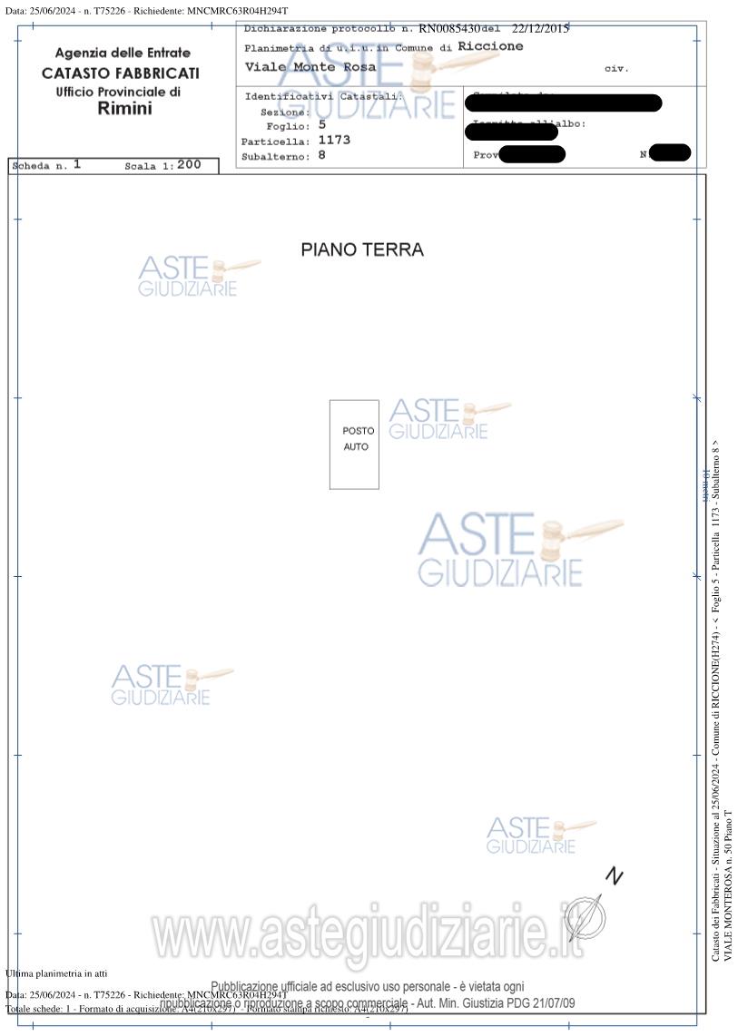 Vendita all'asta Senza incanto, con gara telematica asincrona - LOTTO 10: Piena proprietà per la quota di 1/1 su POSTO AUTO SCOPERTO al piano terra, ubicato in Piazzale 2 Giugno senza n.c. e con accesso da Viale Monte Rosa (in prossimità del fabbricato urbano in regime condominiale, denominato “Residenza Viale Emilia“), sito in Comune di RICCIONE (RN), Viale Emilia dal civico n. 12 al civico n. 18 angolo Viale Monte Rosa,sviluppa una superficie lorda complessiva di circa mq 13 (tredici),confinante con Piazzale 2 Giugno, Subalterni 7 e 9, salvo altri. Prezzo base € 6.000,00 (offerta minima € 4.500,00). Data inizio operazioni di vendita: 27/01/2026 ore 09:00. Giudice Dott. Letizia Bocchini. Professionista delegato alla vendita Not. Giorgia Dondi - Email "gdondi.2@notariato.it"; Tel. 054129305. Custode Giudiziario Not. Giorgia Dondi - Email "gdondi.2@notariato.it"; Tel. 054129305. Rif. Tribunale di Rimini - Espropriazione immobiliare (cartabia) n. 39/2024