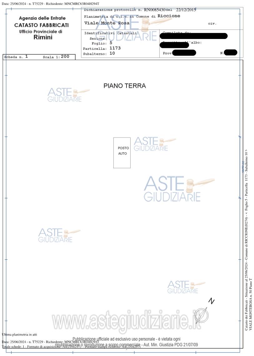 Vendita all'asta Senza incanto, con gara telematica asincrona - LOTTO 12: Piena proprietà POSTO AUTO SCOPERTO al piano terra, ubicato in Piazzale 2 Giugno senza n.c. e con accesso da Viale Monte Rosa; sito in Comune di RICCIONE (RN), sviluppa una superficie lorda complessiva di circa mq 13 (tredici),confinante con Piazzale 2 Giugno, Subalterni 9 e 11, salvo altri. Prezzo base € 6.000,00 (offerta minima € 4.500,00). Data inizio operazioni di vendita: 03/02/2026 ore 09:00. Giudice Dott. Letizia Bocchini. Professionista delegato alla vendita Not. Giorgia Dondi - Email "gdondi.2@notariato.it"; Tel. 054129305. Custode Giudiziario Not. Giorgia Dondi - Email "gdondi.2@notariato.it"; Tel. 054129305. Rif. Tribunale di Rimini - Espropriazione immobiliare (cartabia) n. 39/2024