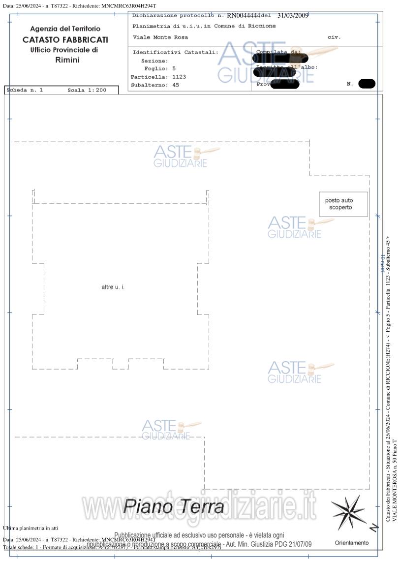 Vendita all'asta Senza incanto, con gara telematica asincrona - LOTTO 18: Piena proprietà su porzioni di fabbricato urbano in regime condominiale, denominato “Residenza I Pini“, sito in Comune di RICCIONE (RN), Viale Monte Rosa civico n. 50, e precisamente: ? POSTO AUTO SCOPERTO al piano terra, AREA URBANA al piano terra, AREA URBANA al piano terra.Sviluppano una superficie lorda complessiva di circa mq 22 (ventidue) di cui circa mq 13 (tredici) il posto auto scoperto e circa mq 9 (nove) le aree urbane. Prezzo base € 19.000,00 (offerta minima € 14.250,00). Data inizio operazioni di vendita: 03/02/2026 ore 09:00. Giudice Dott. Letizia Bocchini. Professionista delegato alla vendita Not. Giorgia Dondi - Email "gdondi.2@notariato.it"; Tel. 054129305. Custode Giudiziario Not. Giorgia Dondi - Email "gdondi.2@notariato.it"; Tel. 054129305. Rif. Tribunale di Rimini - Espropriazione immobiliare (cartabia) n. 39/2024