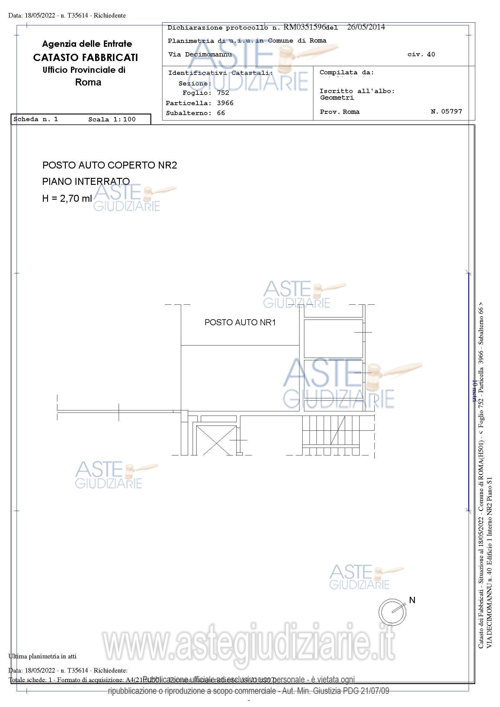 Vendita in attesa dell'emissione del nuovo bando d'asta. LOTTO 3: Piena proprietà superficiaria (1/1) posto auto in Roma, via Decimomannu n. 40, al piano primo sottostrada, lotto J, edificio 1, interno NR2. Ultimo prezzo base € 9.742,50. Giudice Dott. Andrea Petteruti. Rif. Tribunale di Frosinone - Nuovo concordato preventivo n. 1/2012