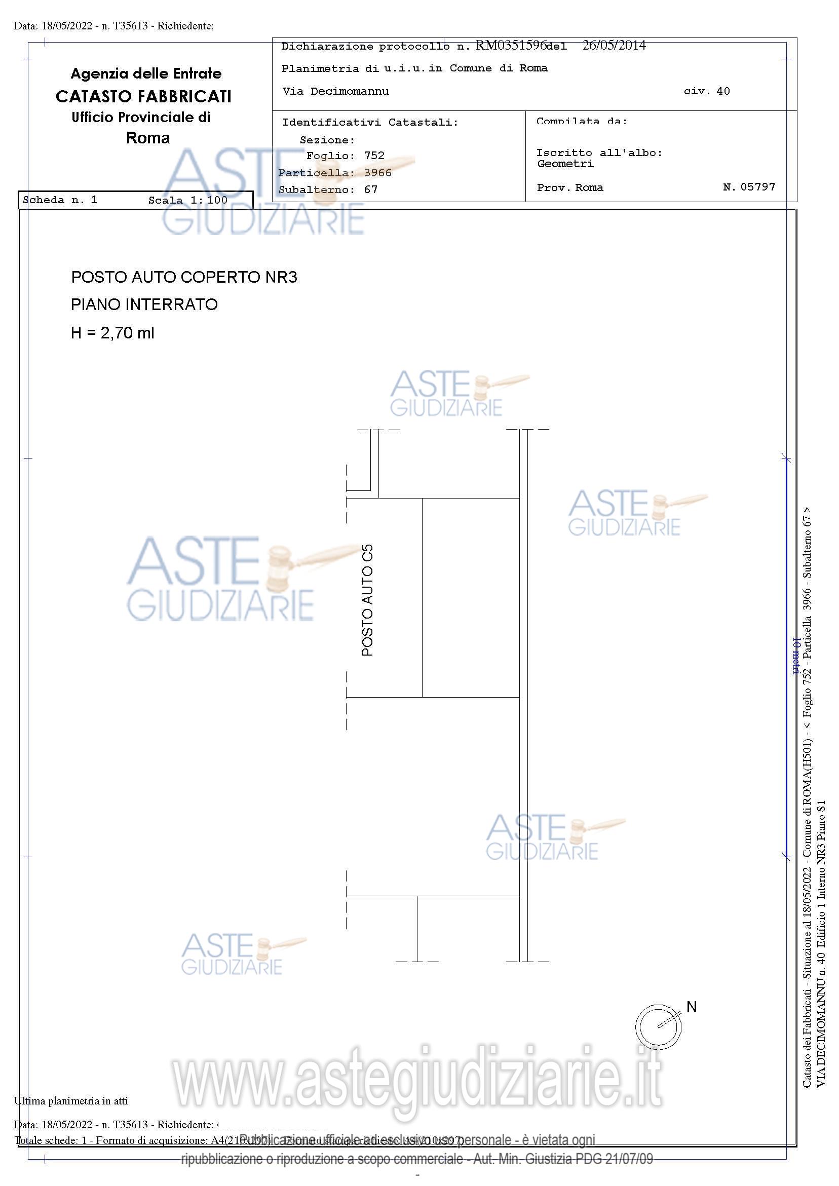 Vendita in attesa dell'emissione del nuovo bando d'asta. LOTTO 4: Piena proprietà superficiaria (1/1) posto auto in Roma, via Decimomannu n. 40, al piano primo sottostrada, lotto J, edificio 1, interno NR3. Ultimo prezzo base € 9.742,50. Giudice Dott. Andrea Petteruti. Rif. Tribunale di Frosinone - Nuovo concordato preventivo n. 1/2012