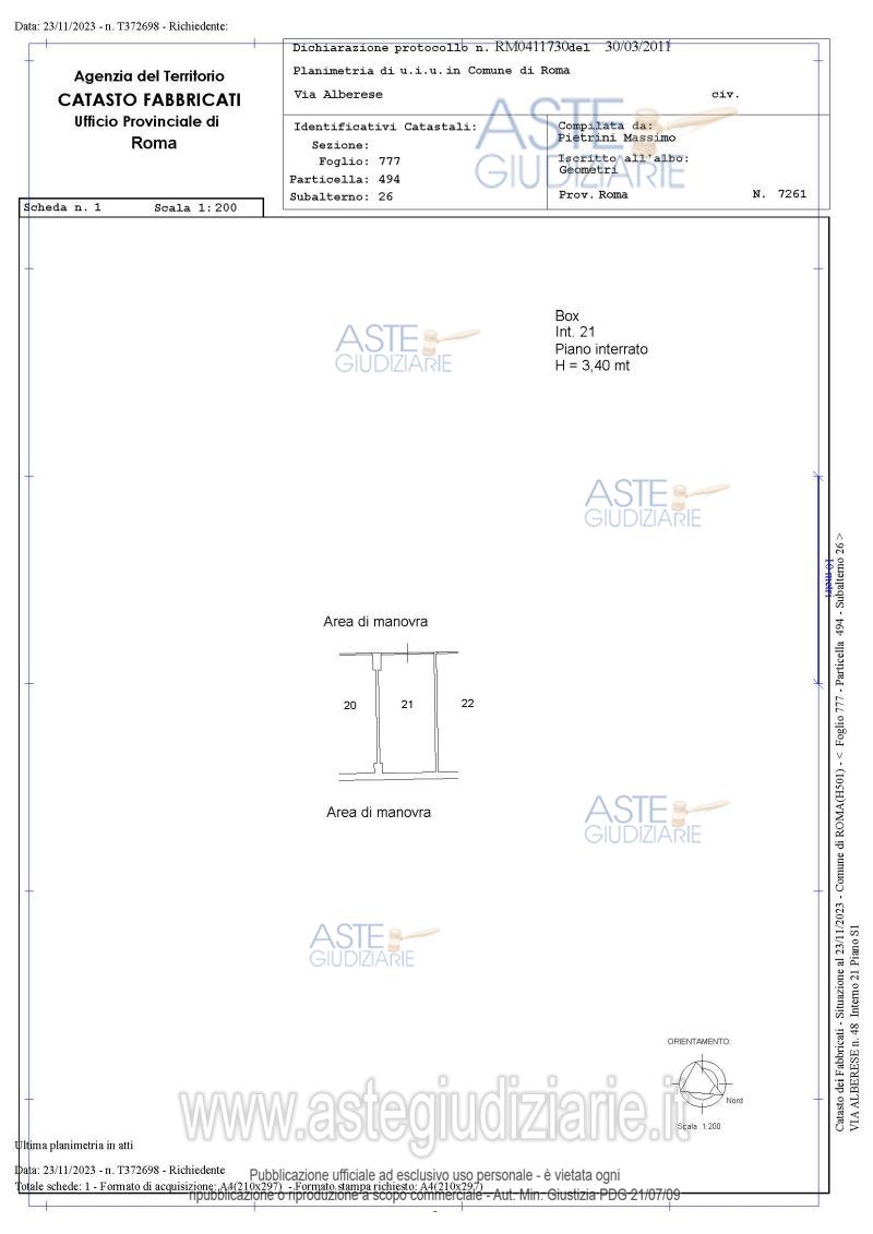 Vendita in attesa dell'emissione del nuovo bando d'asta. LOTTO 1: Quota pari a 1/1 del diritto di proprietà su box auto n. 21, piano sottosuolo, mq 18,00. Costruiti ex L. Tognoli122/1989. L’aggiudicatario dovrà dimostrare il possesso dei requisiti previsti dall’art. 9, co. 5, l. 122/89, e dall’atto d’obbligo del 9 luglio 2009, rep. 11380, trascritto a Roma 1^ il 13 luglio 2009 al n. 90796 del Registro Generale e al numero 48045 del Registro Particolare.A carico dell’aggiudicatario saranno anche le spese di trasferimento del vincolo pertinenziale. Ultimo prezzo base € 11.000,00 (offerta minima € 8.250,00). Giudice Dott. Bianca Ferramosca. Professionista delegato alla vendita Not. Annarita Capodiferro. Custode Giudiziario Ivg Di Roma Srl - Email "pvp@visiteivgroma.it"; Tel. 0689569801. Rif. Tribunale di Roma - Esecuzione immobiliare post legge 80 n. 1221/2022