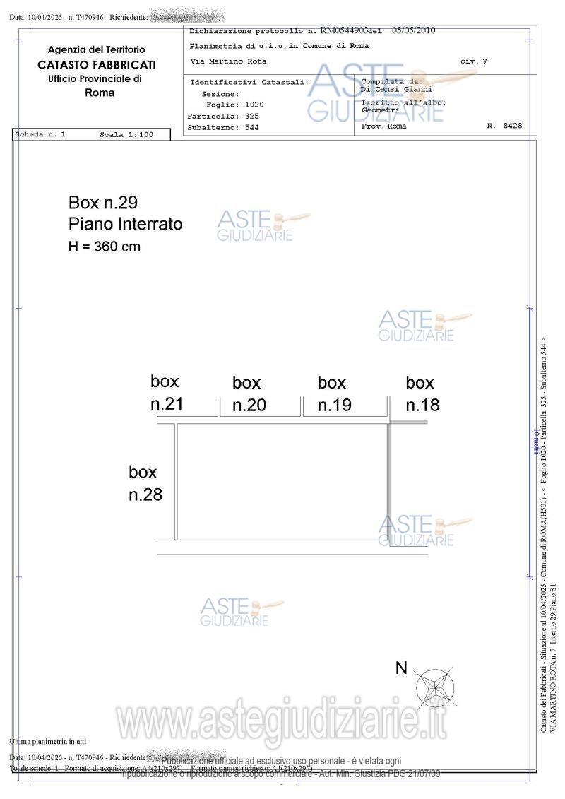 Vendita all'asta Senza incanto, con gara telematica asincrona - LOTTO 20: Piena proprietà per la quota di 1/1 di un Box auto ubicato a Roma (RM) - Via Martino Rota n. 7, interno 29, piano S1, Municipio VI – TORRE ANGELA, facente parte di un fabbricato con destinazione prevalentemente residenziale, che si sviluppa su 3 piani fuori terra e un piano interrato. Prezzo base € 20.000,00 (offerta minima € 15.000,00). Data inizio operazioni di vendita: 20/04/2026 ore 10:00. Giudice Dott. Giuseppe Lauropoli. Professionista delegato alla vendita Avv. Barbara Schepis. Custode Giudiziario Istituto Vendite Giudiziarie Di Roma Srl - Email "pvp@visiteivgroma.it". Rif. Tribunale di Roma - Esecuzione immobiliare post legge 80 n. 1323/2017