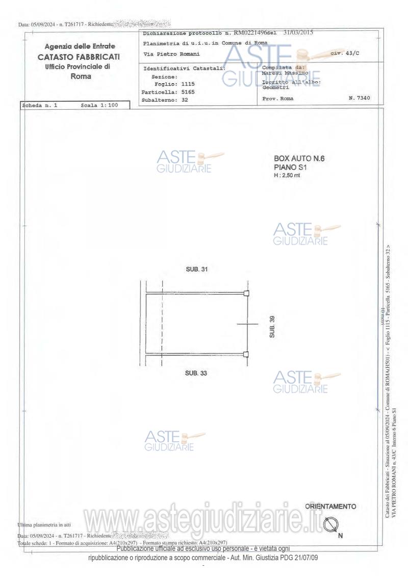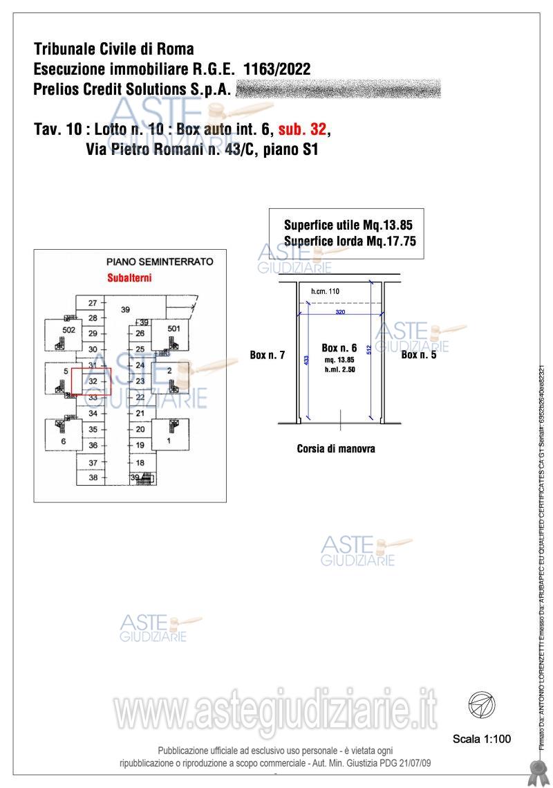 Vendita all'asta Senza incanto, con gara telematica asincrona - LOTTO 10: Quota pari al 100/100 (1/1) del diritto di piena proprietà sull’immobile sito in Roma composto da: Garage ubicato a Roma (RM) - Via Pietro Romani n. 43/A int. 6, interno 6, piano S1. Prezzo base € 20.000,00 (offerta minima € 15.000,00). Data inizio operazioni di vendita: 26/02/2026 ore 14:00. Giudice Dott. Fernando Scolaro. Professionista delegato alla vendita Avv. Gianfranco Buonocunto. Custode Giudiziario Ivg Di Roma Srl - Email "pvp@visiteivgroma.it"; Tel. 0689569801. Rif. Tribunale di Roma - Esecuzione immobiliare post legge 80 n. 1163/2022