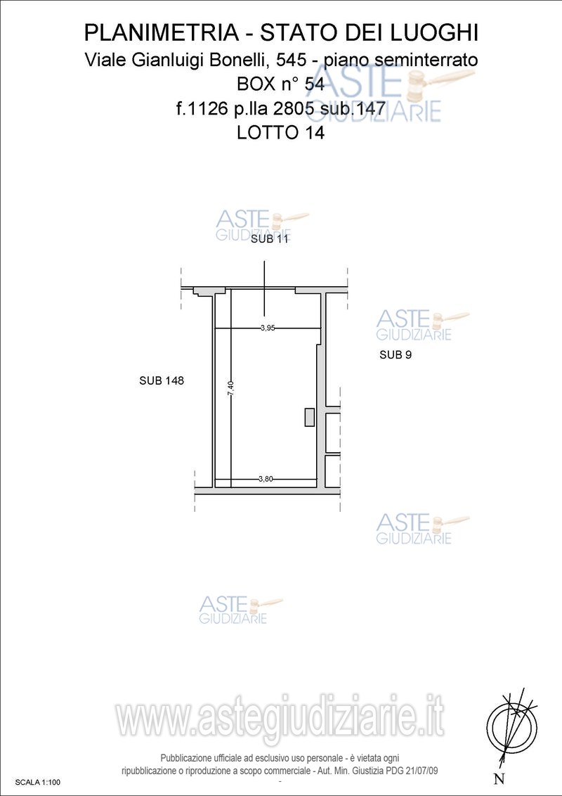Vendita all'asta Senza incanto, con gara telematica asincrona - LOTTO 14: box auto n. 54 sito in Roma, Via Gianluigi Bonelli n. 545 di mq 33 coomerciali, piano S1. Prezzo base € 27.200,00 (offerta minima € 20.400,00). Data inizio operazioni di vendita: 21/05/2026 ore 15:00. Giudice Dott. Giuseppe Lauropoli. Professionista delegato alla vendita Avv. Antonella Scano. Custode Giudiziario I.V.G Di Roma S.R.L. Istituto Vendite Giudiziarie - Email "pubblicita@ivgroma.it"; Tel. 06 83751500. Rif. Tribunale di Roma - Espropriazione immobiliare (cartabia) n. 194/2024