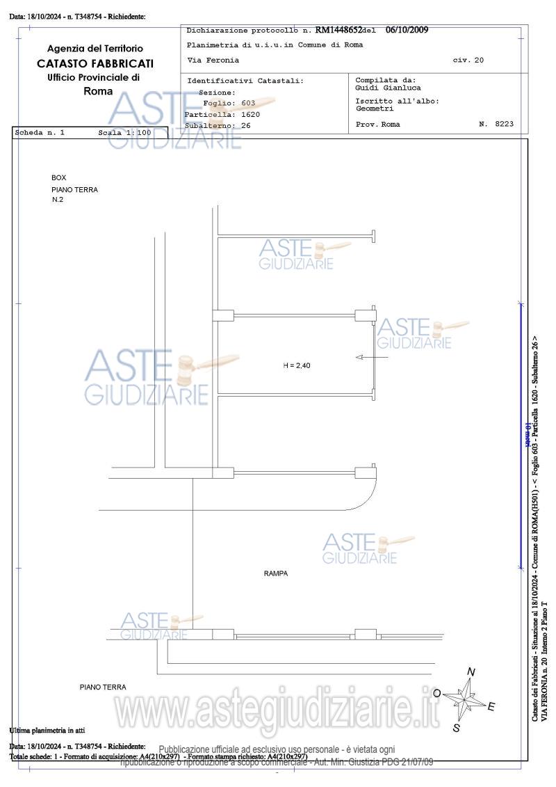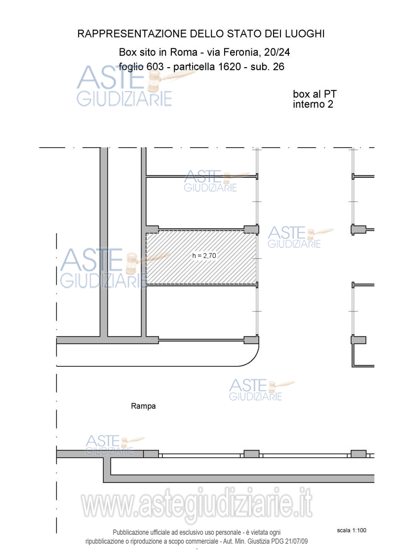 Vendita all'asta Senza incanto, con gara telematica asincrona - LOTTO 2: Proprietà piena ed esclusiva di box auto sito in Roma Capitale, zona Pietralata, via Feronia, 20, piano T, int. 2. Prezzo base € 9.720,00 (offerta minima € 7.290,00). Data inizio operazioni di vendita: 24/03/2026 ore 14:00. Giudice Dott. Romolo Ciufolini. Professionista delegato alla vendita Avv. Luca Bernardini. Custode Giudiziario I.V.G Di Roma S.R.L. Istituto Vendite Giudiziarie - Email "pubblicita@ivgroma.it"; Tel. 06 83751500. Rif. Tribunale di Roma - Esecuzione immobiliare post legge 80 n. 409/2022