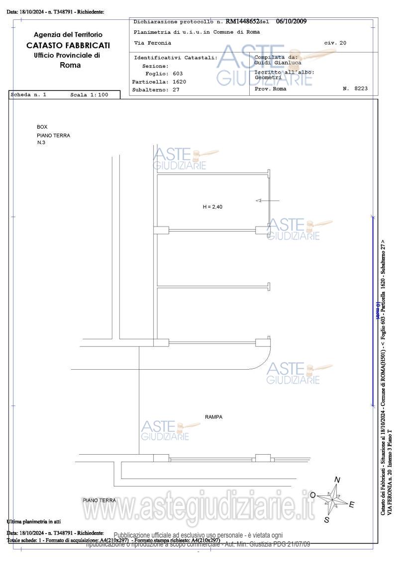 Vendita all'asta Senza incanto, con gara telematica asincrona - LOTTO 3: Proprietà piena ed esclusiva di box auto sito in Roma Capitale, zona Pietralata, via Feronia, 20, piano T, int. 3. Prezzo base € 9.720,00 (offerta minima € 7.290,00). Data inizio operazioni di vendita: 24/03/2026 ore 14:00. Giudice Dott. Romolo Ciufolini. Professionista delegato alla vendita Avv. Luca Bernardini. Custode Giudiziario I.V.G Di Roma S.R.L. Istituto Vendite Giudiziarie - Email "pubblicita@ivgroma.it"; Tel. 06 83751500. Rif. Tribunale di Roma - Esecuzione immobiliare post legge 80 n. 409/2022