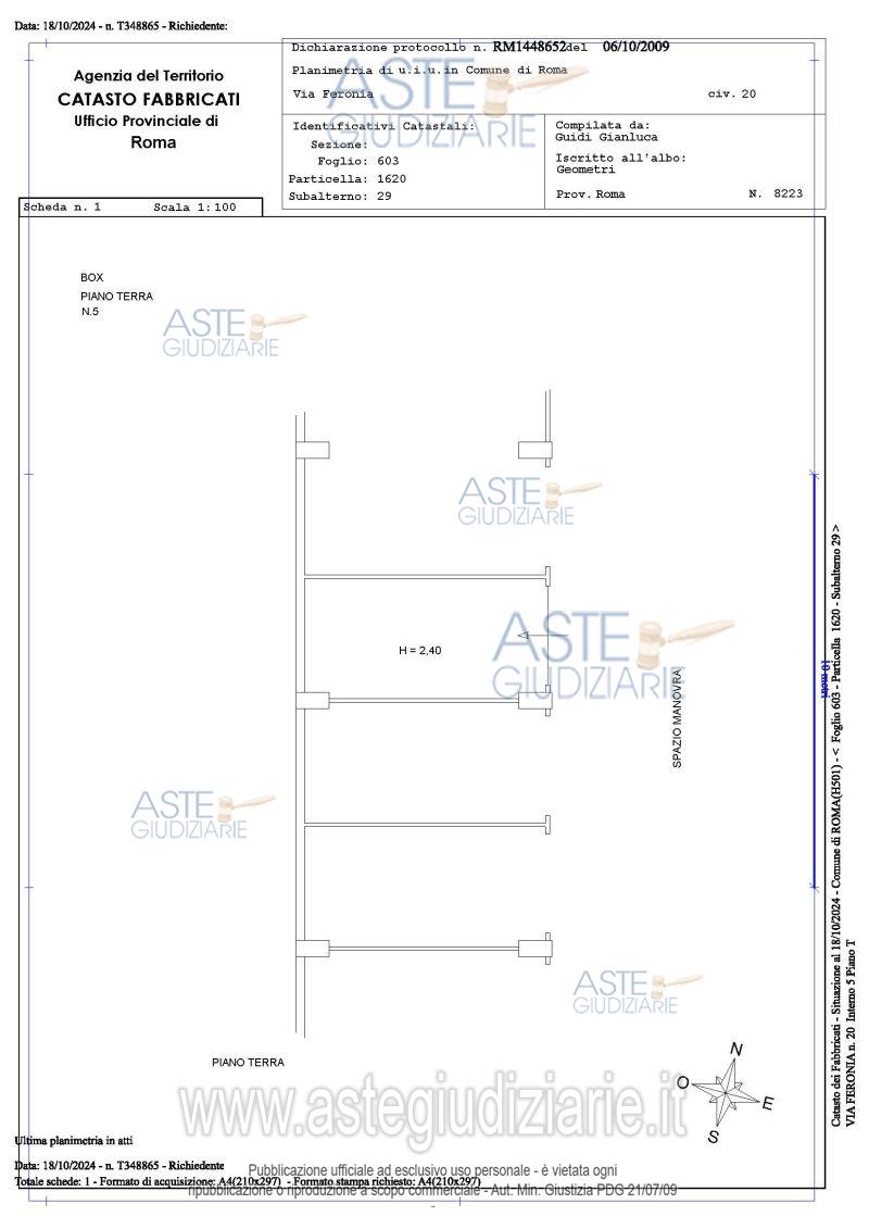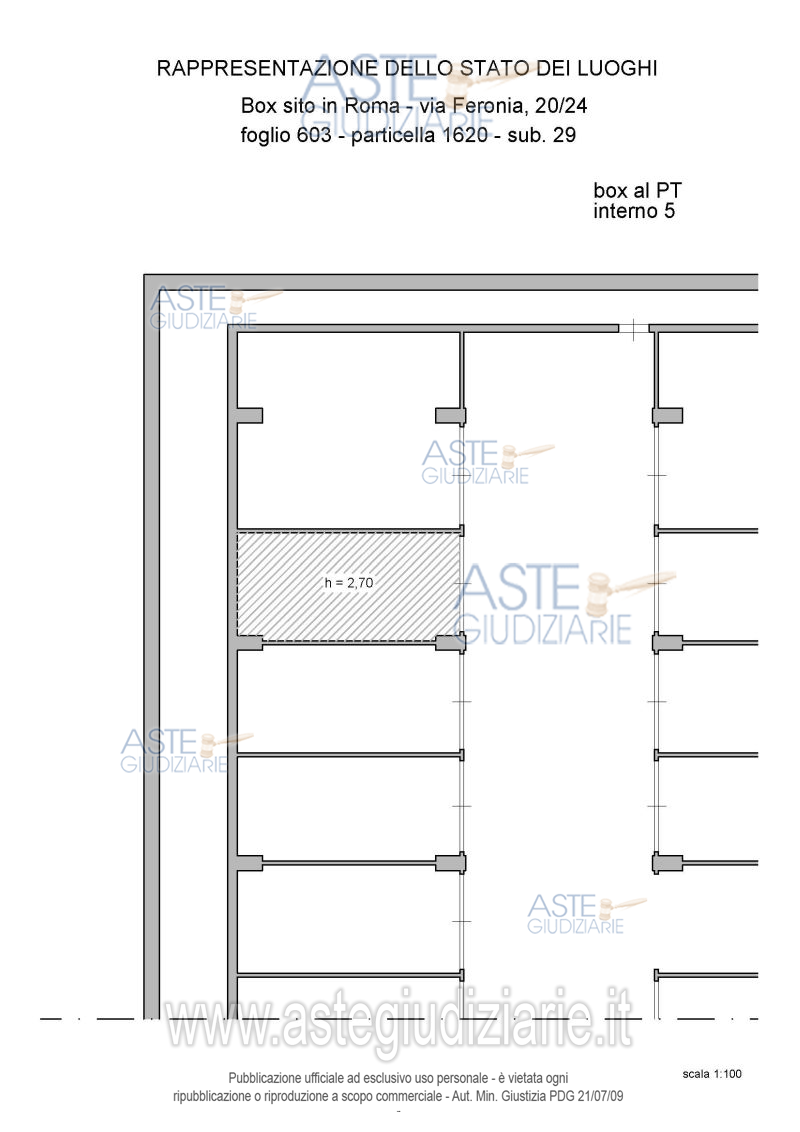 Vendita all'asta Senza incanto, con gara telematica asincrona - LOTTO 5: Proprietà piena ed esclusiva di box auto sito in Roma Capitale, zona Pietralata, via Feronia, 20, piano T, int. 5. Prezzo base € 11.340,00 (offerta minima € 8.505,00). Data inizio operazioni di vendita: 24/03/2026 ore 14:00. Giudice Dott. Romolo Ciufolini. Professionista delegato alla vendita Avv. Luca Bernardini. Custode Giudiziario I.V.G Di Roma S.R.L. Istituto Vendite Giudiziarie - Email "pubblicita@ivgroma.it"; Tel. 06 83751500. Rif. Tribunale di Roma - Esecuzione immobiliare post legge 80 n. 409/2022