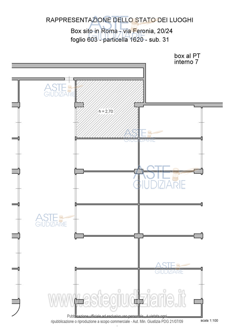 Vendita all'asta Senza incanto, con gara telematica asincrona - LOTTO 7: Proprietà piena ed esclusiva di box auto sito in Roma Capitale, zona Pietralata, via Feronia, 20, piano T, int. 7. Prezzo base € 16.740,00 (offerta minima € 12.555,00). Data inizio operazioni di vendita: 24/03/2026 ore 14:00. Giudice Dott. Romolo Ciufolini. Professionista delegato alla vendita Avv. Luca Bernardini. Custode Giudiziario I.V.G Di Roma S.R.L. Istituto Vendite Giudiziarie - Email "pubblicita@ivgroma.it"; Tel. 06 83751500. Rif. Tribunale di Roma - Esecuzione immobiliare post legge 80 n. 409/2022