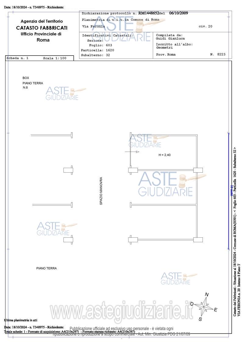 Vendita all'asta Senza incanto, con gara telematica asincrona - LOTTO 8: Proprietà piena ed esclusiva di box auto sito in Roma Capitale, zona Pietralata, via Feronia, 20, piano T, int. 8. Prezzo base € 8.568,00 (offerta minima € 6.426,00). Data inizio operazioni di vendita: 03/06/2026 ore 14:00. Giudice Dott. Raffaele Russo. Professionista delegato alla vendita Avv. Luca Bernardini. Custode Giudiziario Ivg Di Roma Srl - Email "pvp@visiteivgroma.it"; Tel. 0689569801. Rif. Tribunale di Roma - Esecuzione immobiliare post legge 80 n. 409/2022