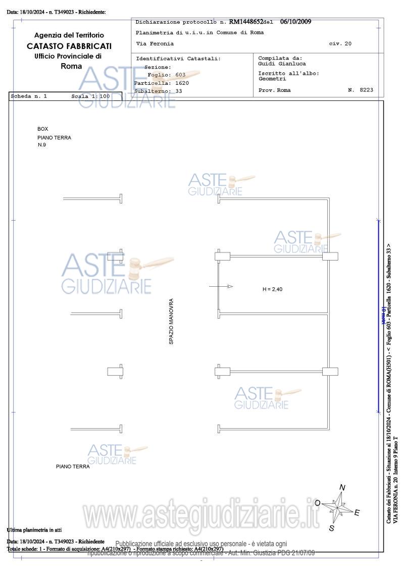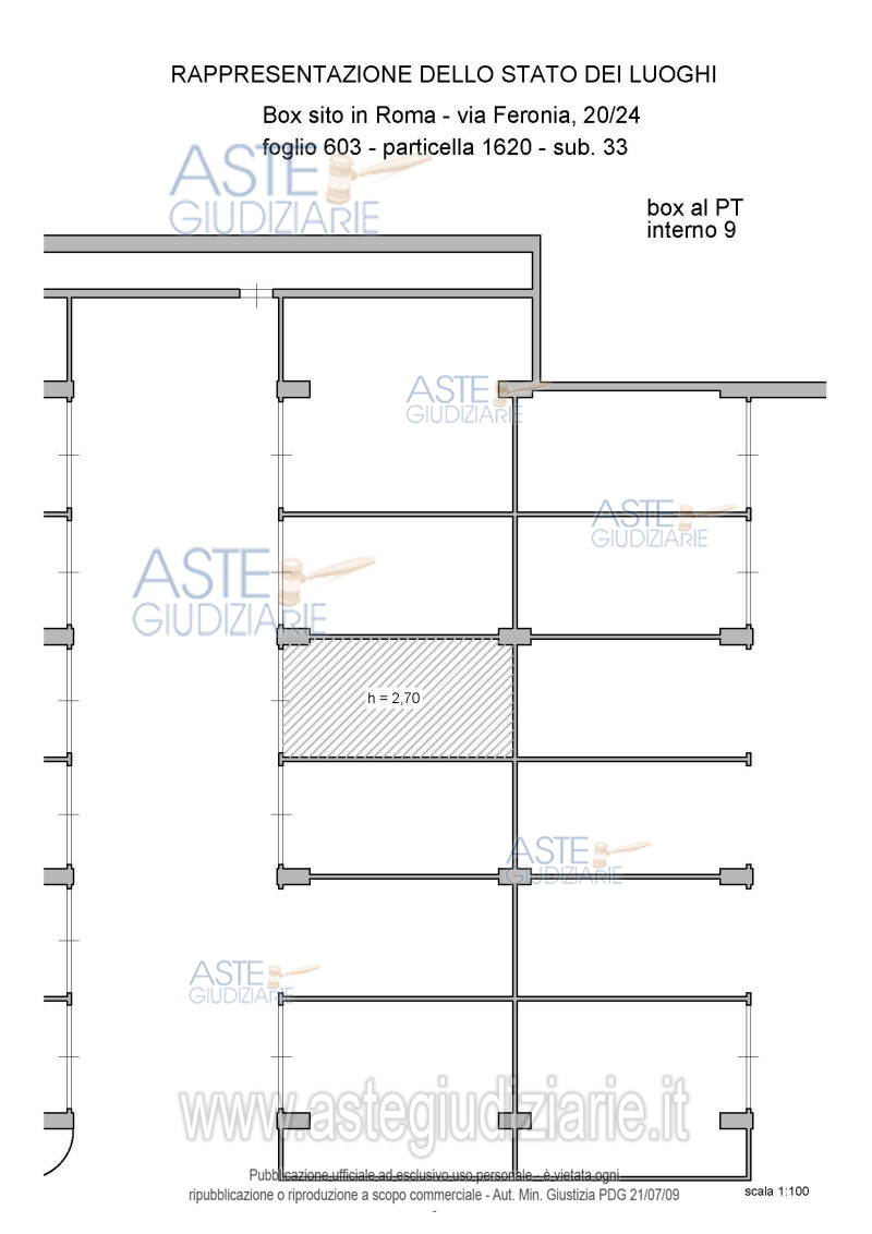 Vendita all'asta Senza incanto, con gara telematica asincrona - LOTTO 9: Proprietà piena ed esclusiva di box auto sito in Roma Capitale, zona Pietralata, via Feronia, 20, piano T, int. 9. Prezzo base € 8.568,00 (offerta minima € 6.426,00). Data inizio operazioni di vendita: 03/06/2026 ore 14:00. Giudice Dott. Raffaele Russo. Professionista delegato alla vendita Avv. Luca Bernardini. Custode Giudiziario Ivg Di Roma Srl - Email "pvp@visiteivgroma.it"; Tel. 0689569801. Rif. Tribunale di Roma - Esecuzione immobiliare post legge 80 n. 409/2022