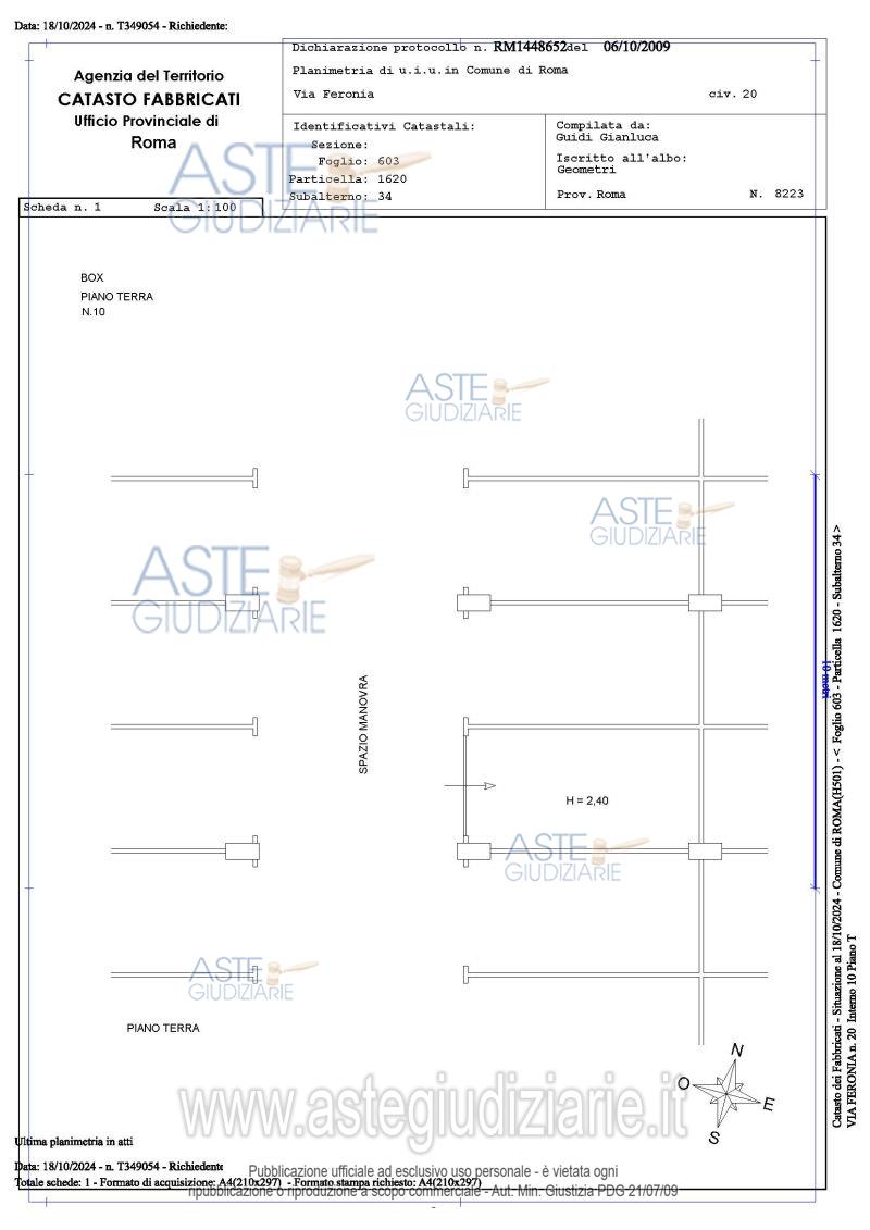 Vendita all'asta Senza incanto, con gara telematica asincrona - LOTTO 10: Proprietà piena ed esclusiva di box auto sito in Roma Capitale, zona Pietralata, via Feronia, 20, piano T, int. 10. Prezzo base € 10.710,00 (offerta minima € 8.032,50). Data inizio operazioni di vendita: 24/03/2026 ore 14:00. Giudice Dott. Romolo Ciufolini. Professionista delegato alla vendita Avv. Luca Bernardini. Custode Giudiziario I.V.G Di Roma S.R.L. Istituto Vendite Giudiziarie - Email "pubblicita@ivgroma.it"; Tel. 06 83751500. Rif. Tribunale di Roma - Esecuzione immobiliare post legge 80 n. 409/2022