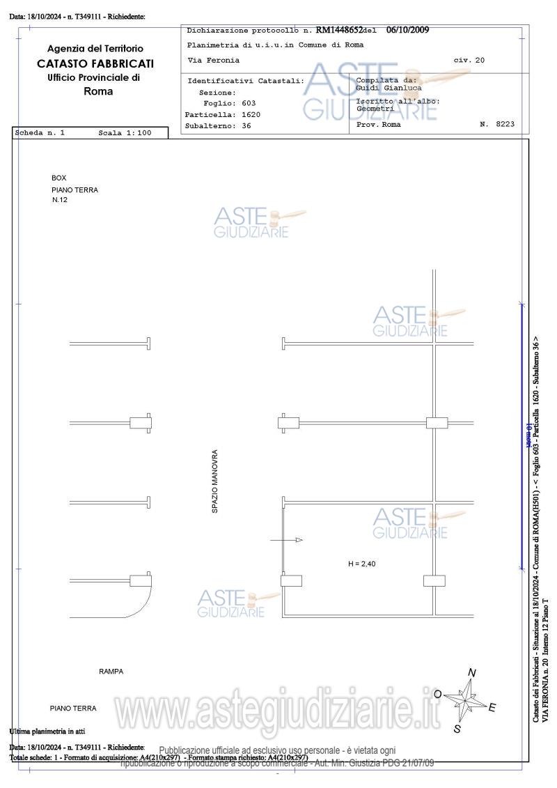 Vendita all'asta Senza incanto, con gara telematica asincrona - LOTTO 11: Proprietà piena ed esclusiva di box auto sito in Roma Capitale, zona Pietralata, via Feronia, 20, piano T, int. 12. Prezzo base € 15.750,00 (offerta minima € 11.812,50). Data inizio operazioni di vendita: 24/03/2026 ore 14:00. Giudice Dott. Romolo Ciufolini. Professionista delegato alla vendita Avv. Luca Bernardini. Custode Giudiziario I.V.G Di Roma S.R.L. Istituto Vendite Giudiziarie - Email "pubblicita@ivgroma.it"; Tel. 06 83751500. Rif. Tribunale di Roma - Esecuzione immobiliare post legge 80 n. 409/2022