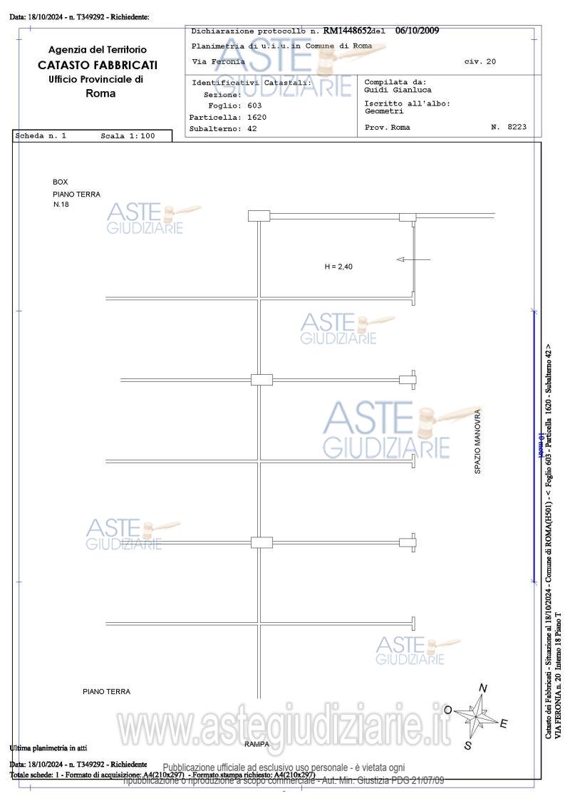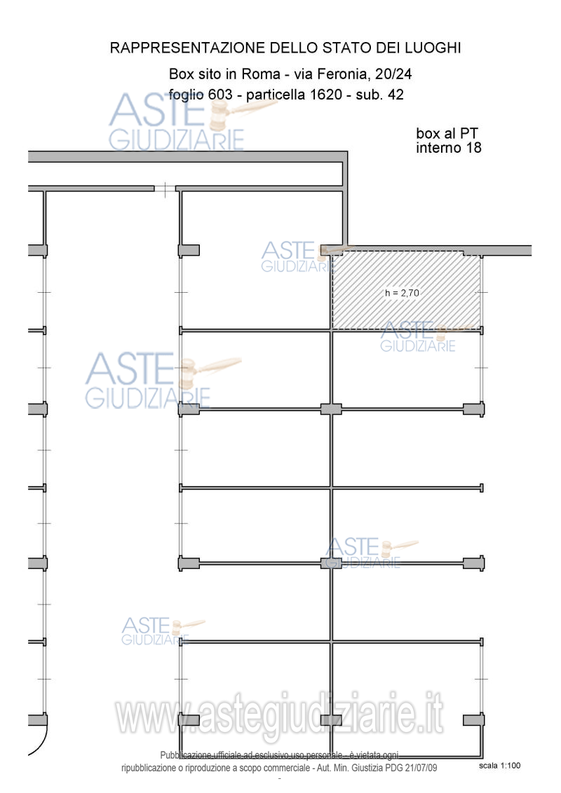 Vendita all'asta Senza incanto, con gara telematica asincrona - LOTTO 14: Proprietà piena ed esclusiva di box auto sito in Roma Capitale, zona Pietralata, via Feronia, 20, piano T, int. 18. Prezzo base € 9.720,00 (offerta minima € 7.290,00). Data inizio operazioni di vendita: 24/03/2026 ore 14:00. Giudice Dott. Romolo Ciufolini. Professionista delegato alla vendita Avv. Luca Bernardini. Custode Giudiziario I.V.G Di Roma S.R.L. Istituto Vendite Giudiziarie - Email "pubblicita@ivgroma.it"; Tel. 06 83751500. Rif. Tribunale di Roma - Esecuzione immobiliare post legge 80 n. 409/2022